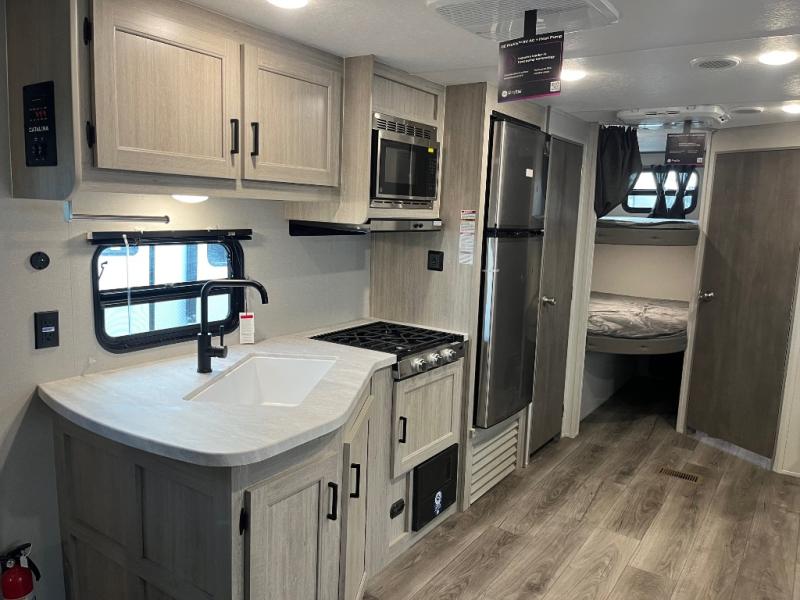 With any Catalina Summit Series 8 by Coachmen you will enjoy an affordable travel trailer packed with at-home comforts! The solid construction includes a Norco electromagnetic powder coated chassis, a seamless Alpha roof membrane, and full length frame outriggers for maximum support and durability. Dexter EZ lube axles with leaf spring suspension and self adjusting brakes provide smooth towing from home to campground, and the premium exterior graphics package is sure to turn heads as you travel down the highway. You will love the features included, such as a JBL Aura Cube media center, magnetic baggage door latches, 4,000 lumen interior touch lighting, LCI One Control, and the list goes on!