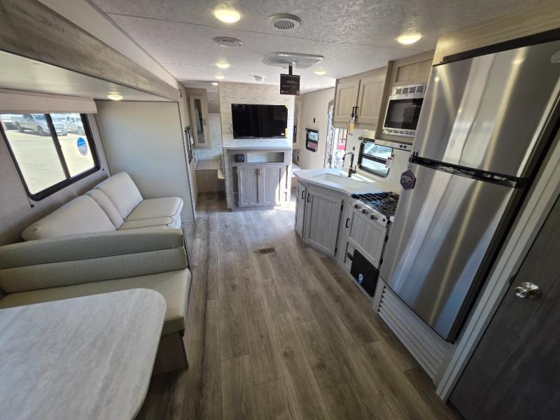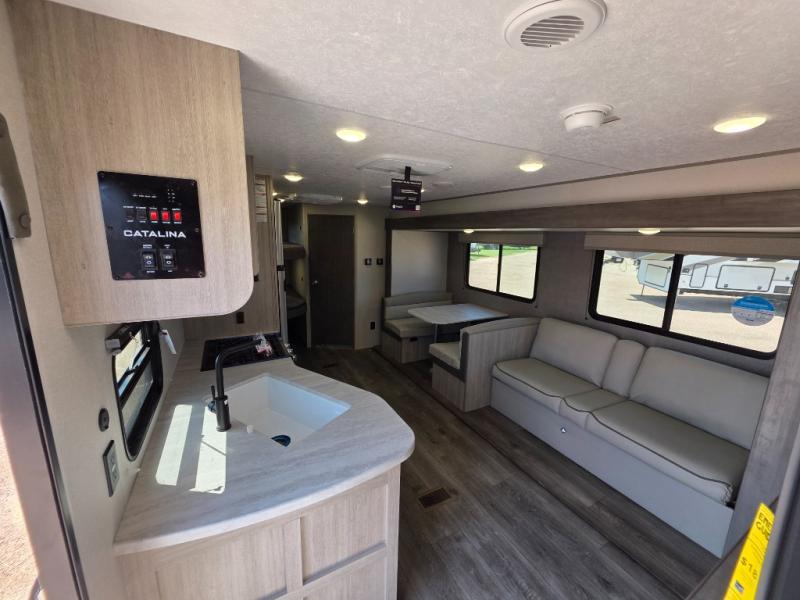 With any Catalina Summit Series 8 by Coachmen you will enjoy an affordable travel trailer packed with at-home comforts! The solid construction includes a Norco electromagnetic powder coated chassis, a seamless Alpha roof membrane, and full length frame outriggers for maximum support and durability. Dexter EZ lube axles with leaf spring suspension and self adjusting brakes provide smooth towing from home to campground, and the premium exterior graphics package is sure to turn heads as you travel down the highway. You will love the features included, such as a JBL Aura Cube media center, magnetic baggage door latches, 4,000 lumen interior touch lighting, LCI One Control, and the list goes on!