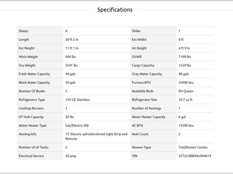 | Awning Info | 15' Electric w/Multicolored Light Strip and Remote |