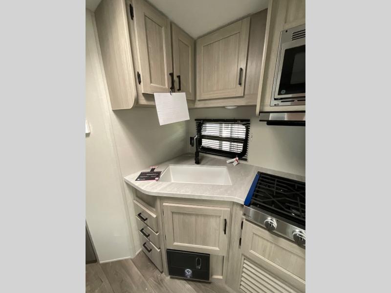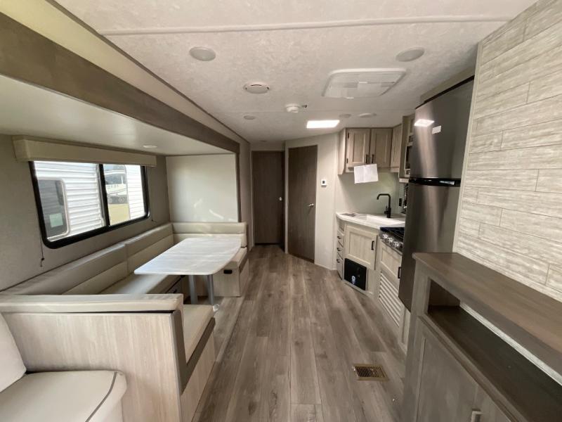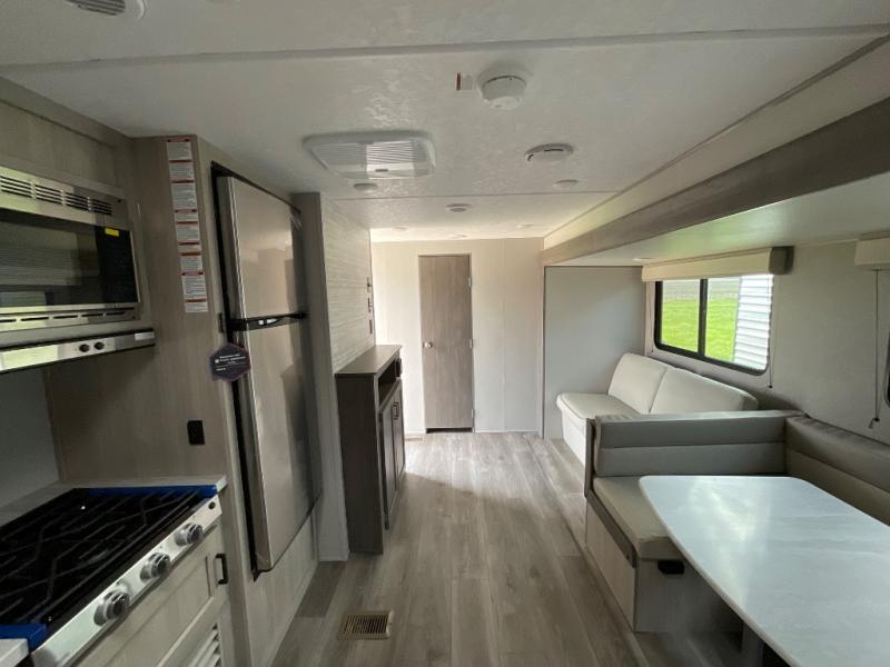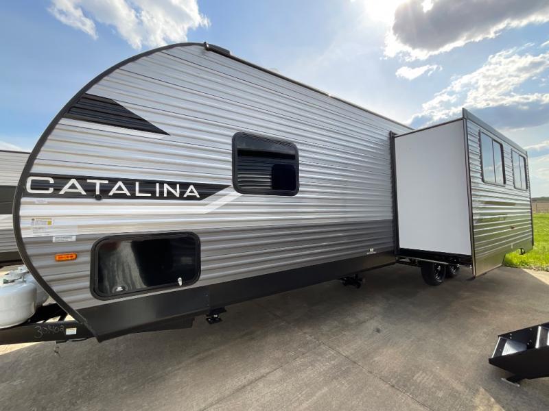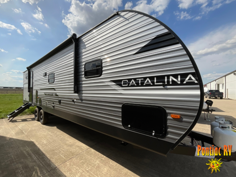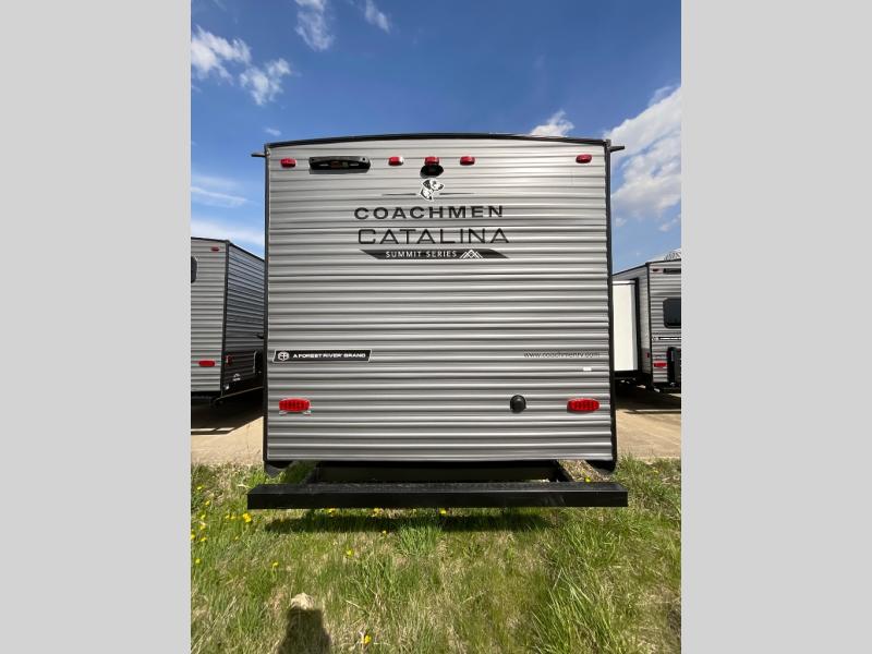 With any Catalina Summit Series 8 by Coachmen you will enjoy an affordable travel trailer packed with at-home comforts! The solid construction includes a Norco electromagnetic powder coated chassis, a seamless Alpha roof membrane, and full length frame outriggers for maximum support and durability. EZ lube axles with leaf spring suspension and self adjusting brakes provide smooth towing from home to campground, and the premium exterior graphics package is sure to turn heads as you travel down the highway. You will love the features included, such as a JBL Aura Cube media center, magnetic baggage door latches, 4,000 lumen interior touch lighting, and the list goes on!