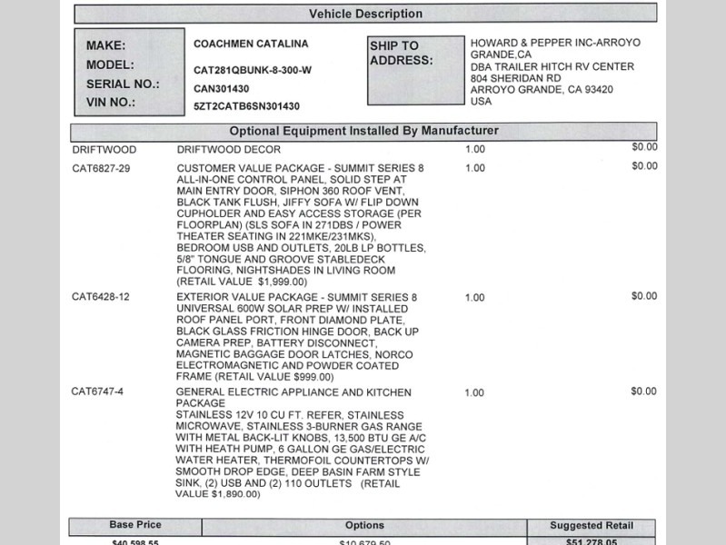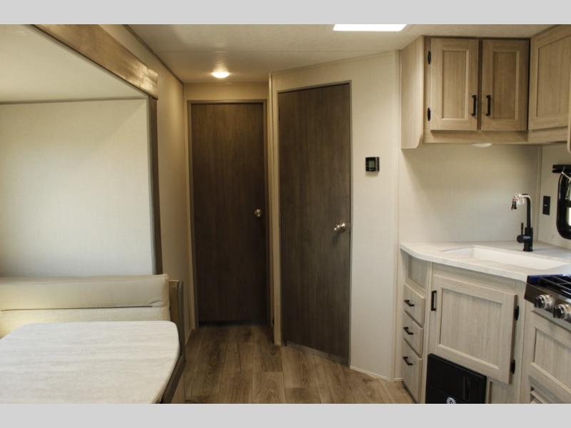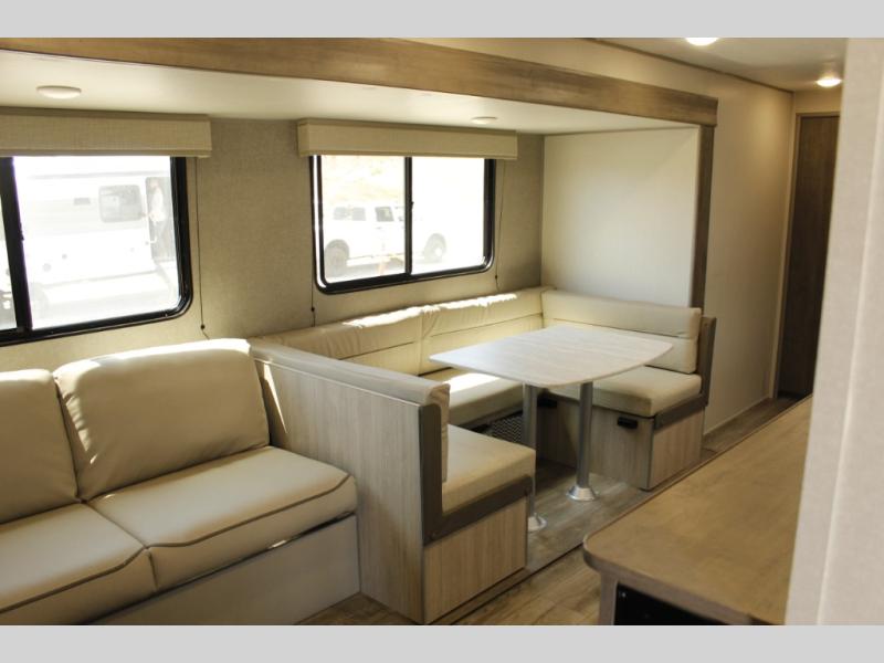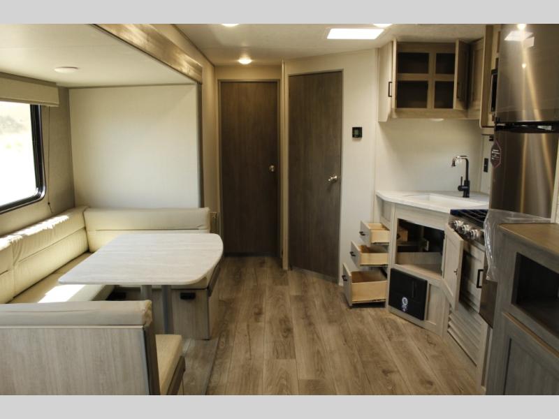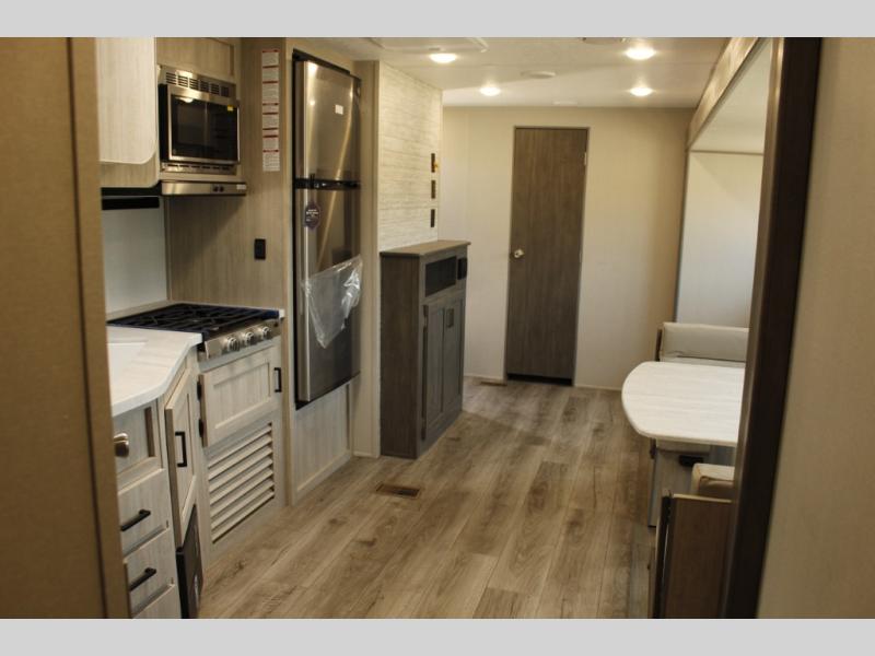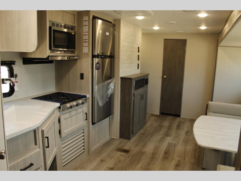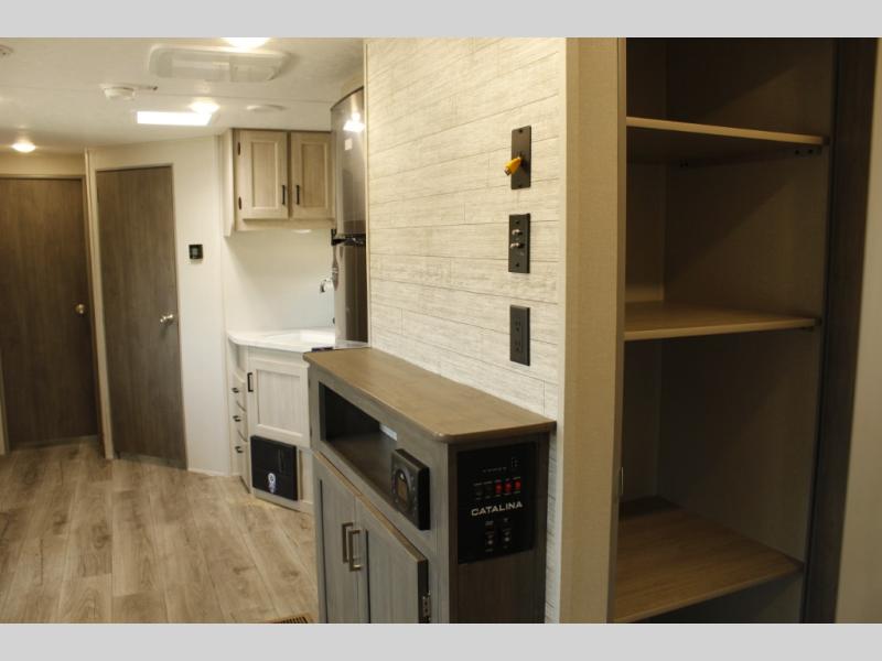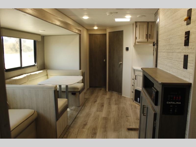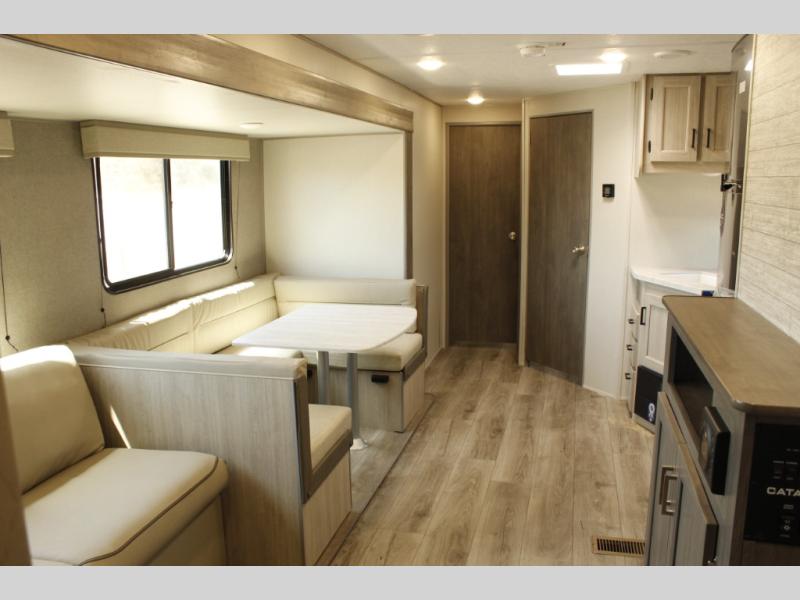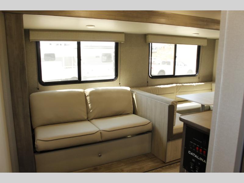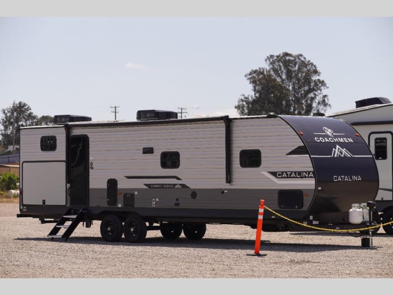 With any Catalina Summit Series 8 by Coachmen you will enjoy an affordable travel trailer packed with at-home comforts! The solid construction includes a Norco electromagnetic powder coated chassis, a seamless Alpha roof membrane, and full length frame outriggers for maximum support and durability. EZ lube axles with leaf spring suspension and self adjusting brakes provide smooth towing from home to campground, and the premium exterior graphics package is sure to turn heads as you travel down the highway. You will love the features included, such as a JBL Aura Cube media center, magnetic baggage door latches, 4,000 lumen interior touch lighting, and the list goes on!