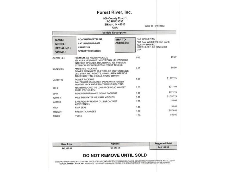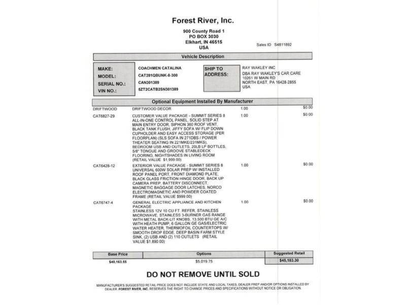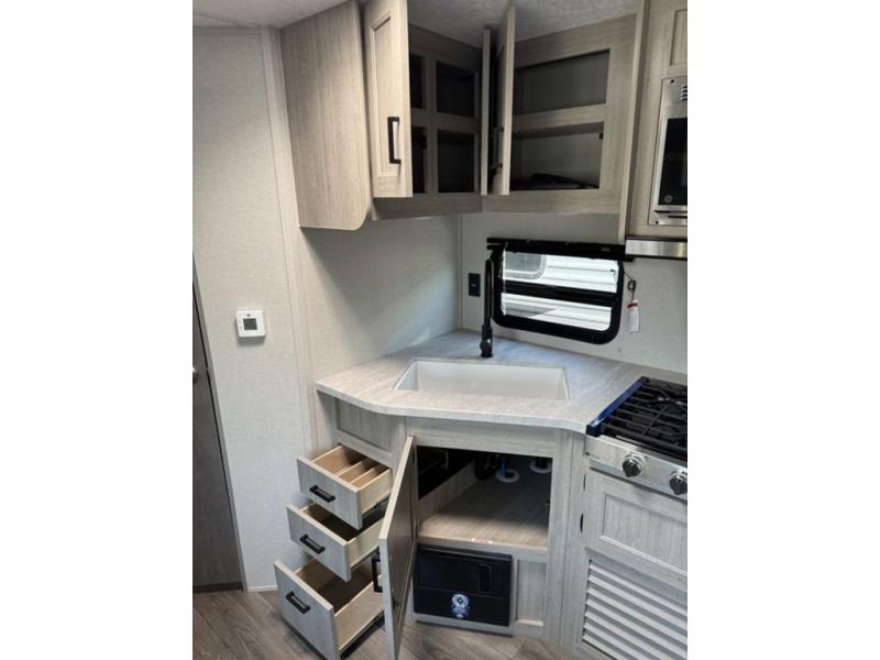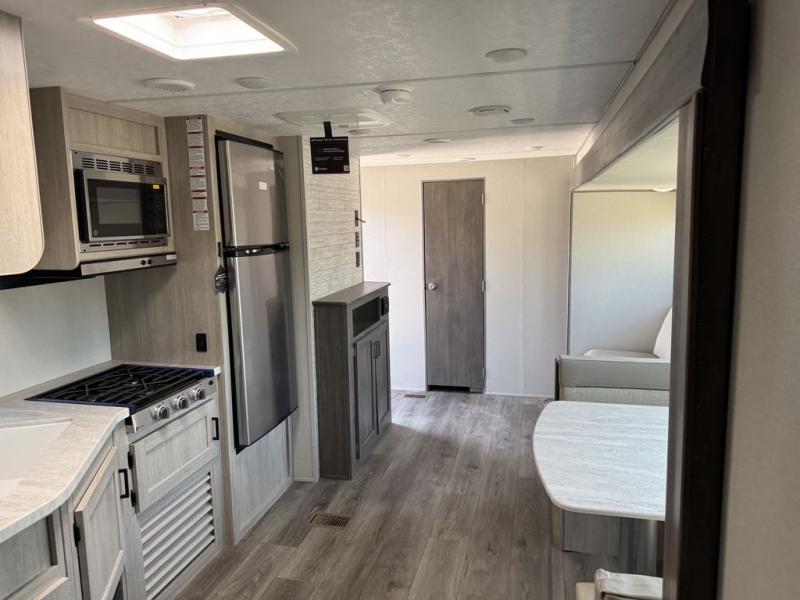 With any Catalina Summit Series 8 by Coachmen you will enjoy an affordable travel trailer packed with at-home comforts! The solid construction includes a Norco electromagnetic powder coated chassis, a seamless Alpha roof membrane, and full length frame outriggers for maximum support and durability. EZ lube axles with leaf spring suspension and self adjusting brakes provide smooth towing from home to campground, and the premium exterior graphics package is sure to turn heads as you travel down the highway. You will love the features included, such as a JBL Aura Cube media center, magnetic baggage door latches, 4,000 lumen interior touch lighting, and the list goes on!