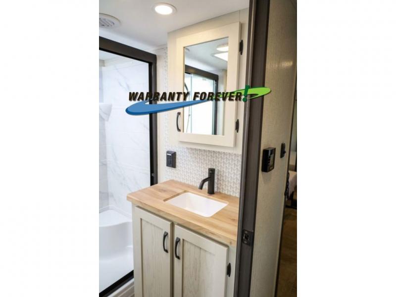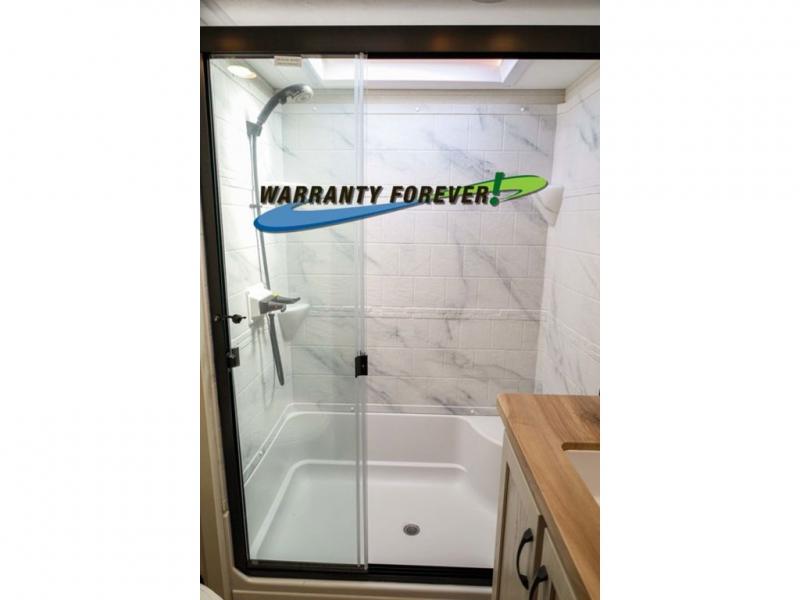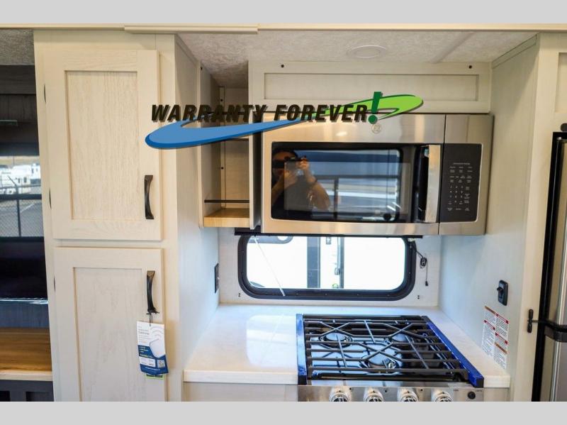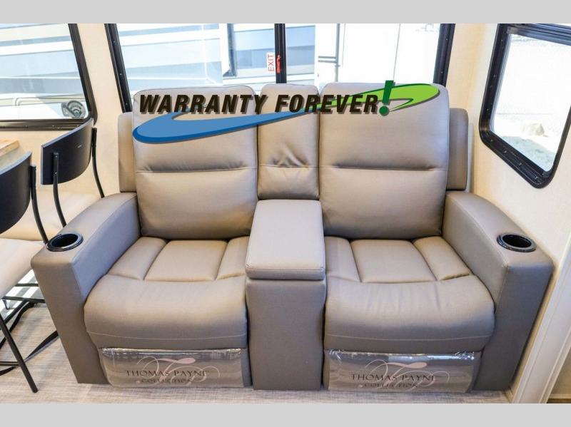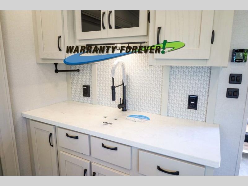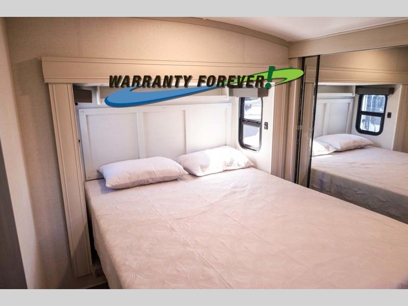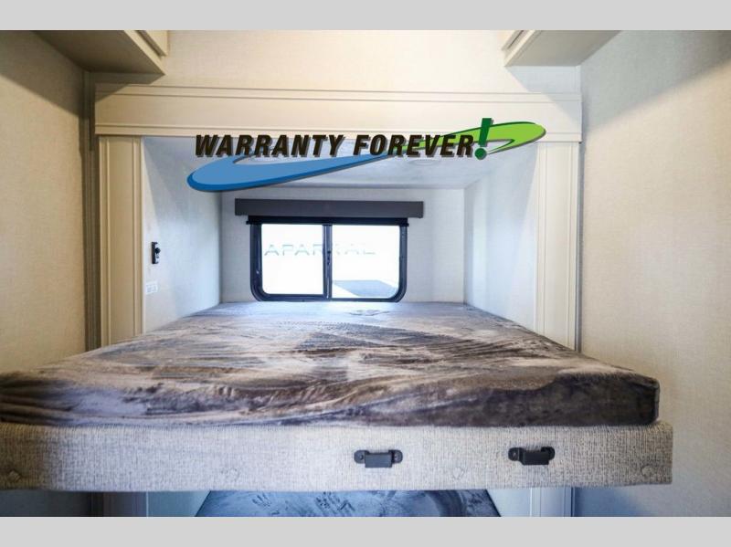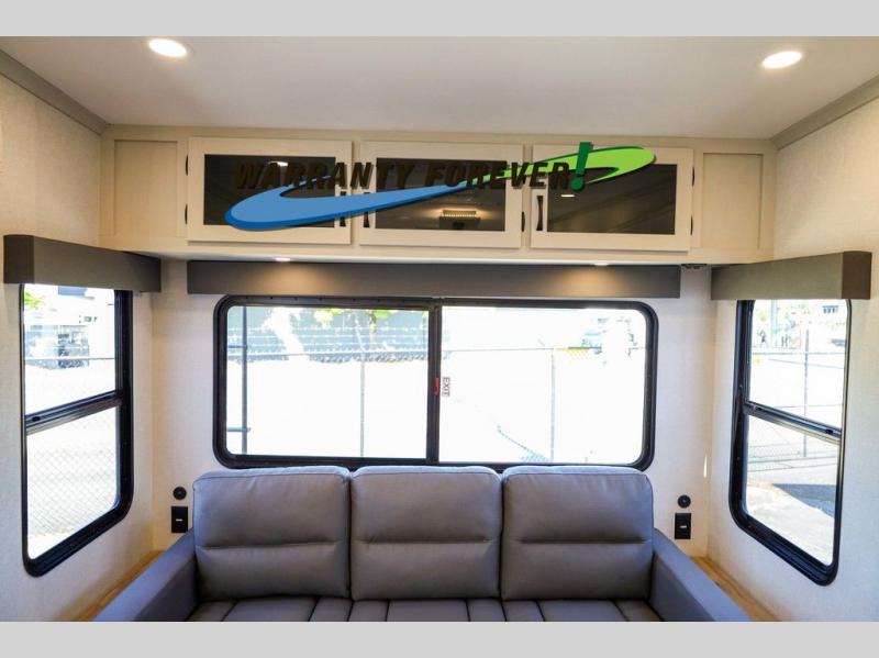 Each Chaparral mid-profile fifth wheel by Coachmen is designed with residential features, loads of storage space, and roomy bedroom suites to make you feel right at home. The durable construction means you can enjoy your RV for years to come. There's 6X double Azdel aluminum cage sidewall system, Weather Shield+ technology, and Tri-Tex powder coated frame technology that will help extend your camping season. Each model includes a Winegard Air 360+ HDTV/radio dome antenna to help keep you connected as you camp, slow rise blackout roller night shades, a new 16 cu. ft. side-by-side stainless glass 12V refrigerator, and a modern electric fireplace to make your space cozy. There is also a large transom window in the kitchen, a modern high-rise faucet, LED motion sensor lights in the bathroom, plus a full-size shower with glass doors and a seat. Now that's what I call luxury! Choose a Chaparral fifth wheel today!