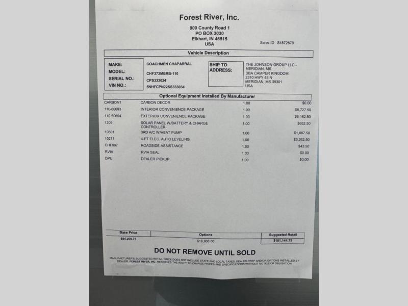 | Awning Info | 17' Electric with LED Light Strip |