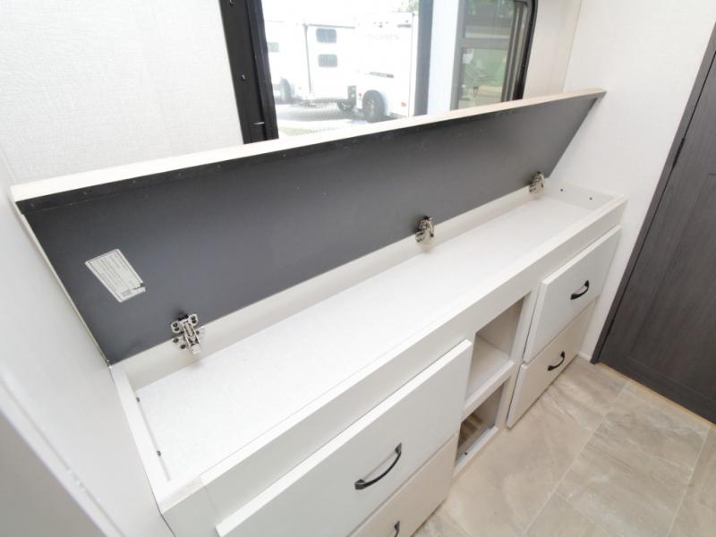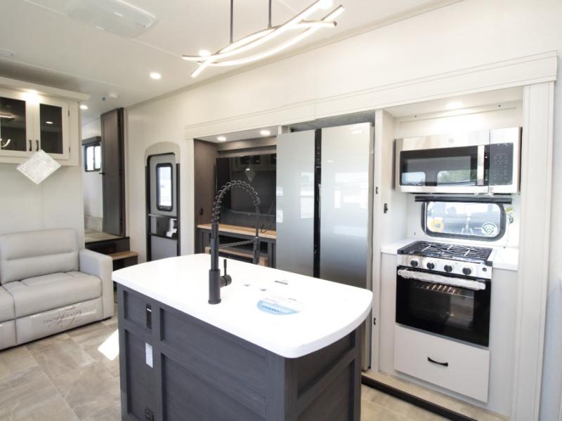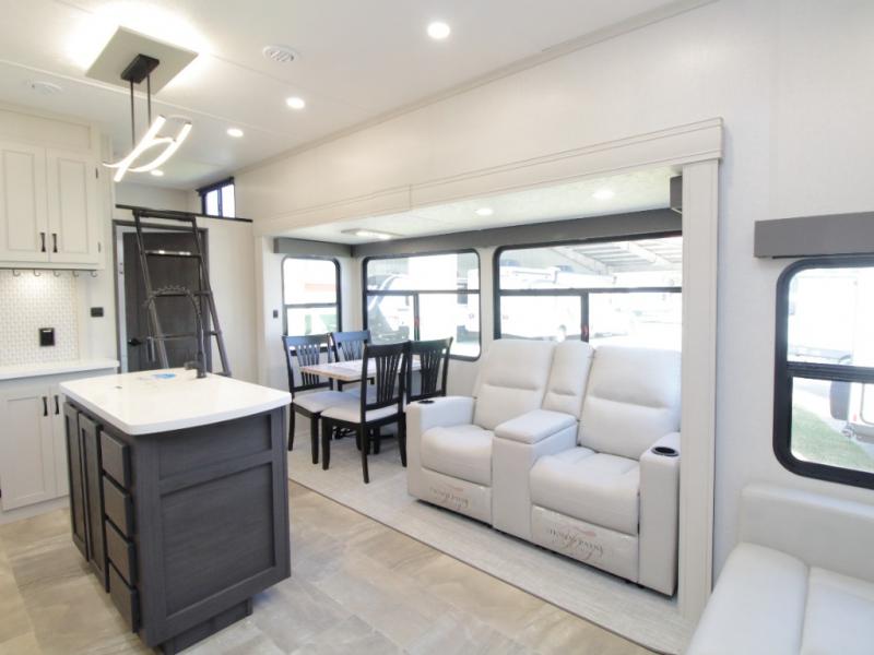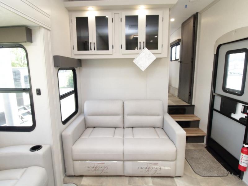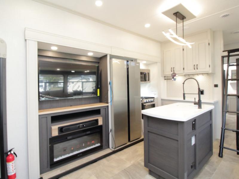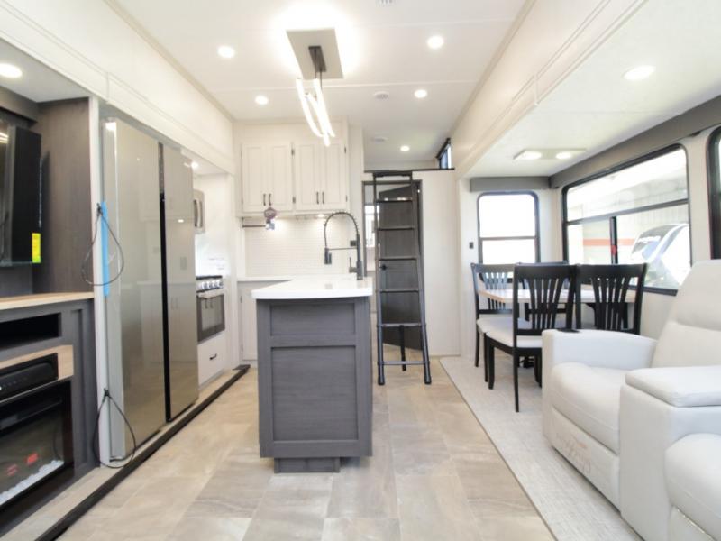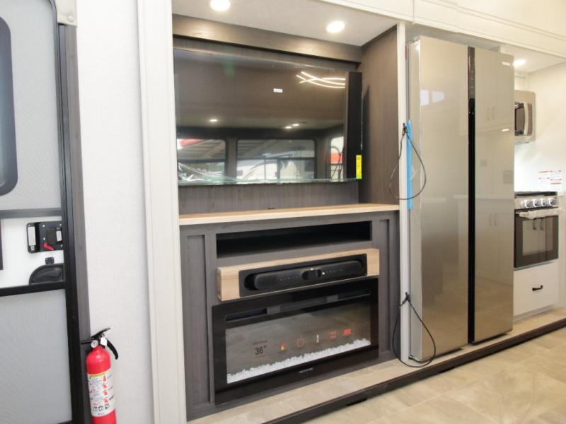 Luxury Finishes – From an electric fireplace and panoramic windows to modern furniture and elegant finishes, the 381DBL makes every trip feel like home.