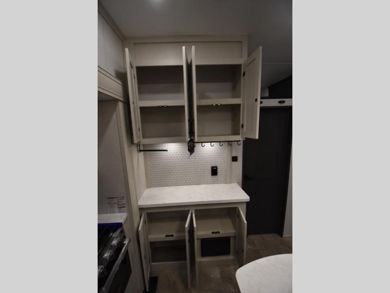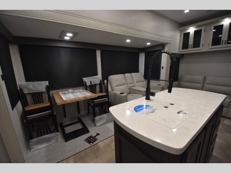 - Outdoor Entertainment and Kitchen – A power awning with LED lighting, exterior speakers, and an outdoor kitchen provide the perfect setup for outdoor living.