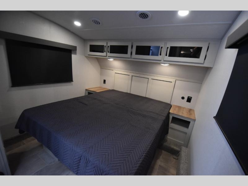 - Bunkhouse with Loft – The secondary bedroom features a sofa, flip-down bunk, and additional storage, making it ideal for kids, guests, or even a mobile office space.