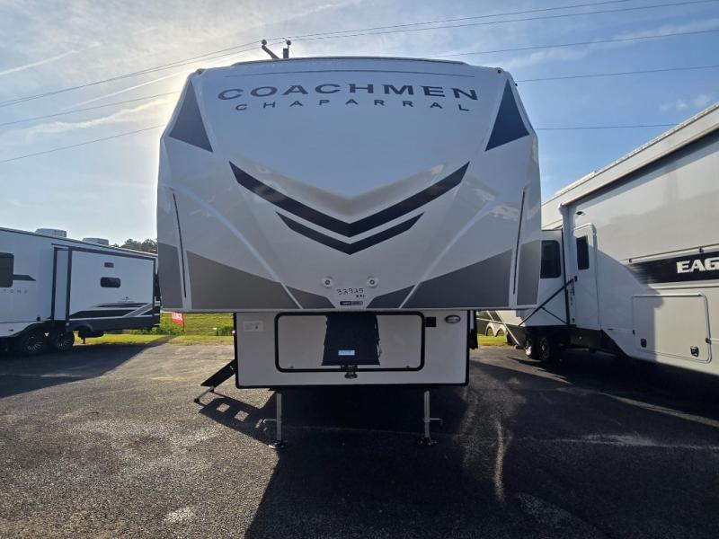 The Coachmen Chaparral 381DBL Mid-Profile Fifth Wheel is packed with impressive features that combine comfort, convenience, and luxury. Here’s a breakdown of its highlights: