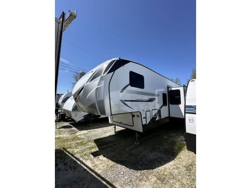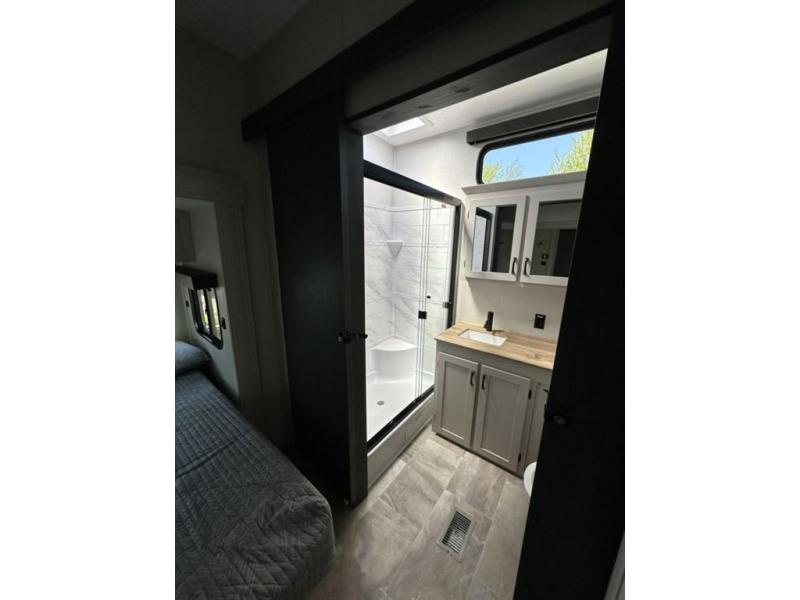 Each Chaparral mid-profile fifth wheel by Coachmen is designed with residential features, loads of storage space, and roomy bedroom suites to make you feel right at home. The durable construction means you can enjoy your RV for years to come. There's 6X double Azdel aluminum cage sidewall system, Weather Shield+ technology, and Tri-Tex powder coated frame technology that will help extend your camping season. Each model includes a Winegard Air 360+ HDTV/radio dome antenna to help keep you connected as you camp, slow rise blackout roller night shades, a new 16 cu. ft. side-by-side stainless glass 12V refrigerator, and a modern electric fireplace to make your space cozy. There is also a large transom window in the kitchen, a modern high-rise faucet, LED motion sensor lights in the bathroom, plus a full-size shower with glass doors and a seat. Now that's what I call luxury! Choose a Chaparral fifth wheel today!