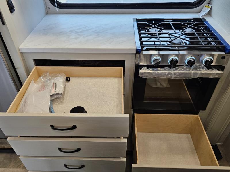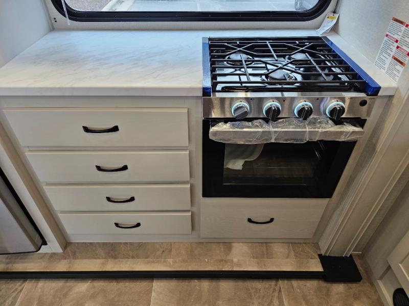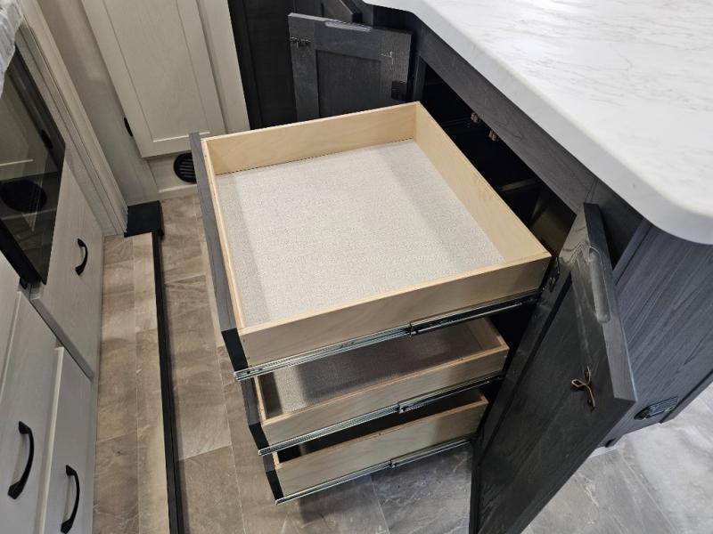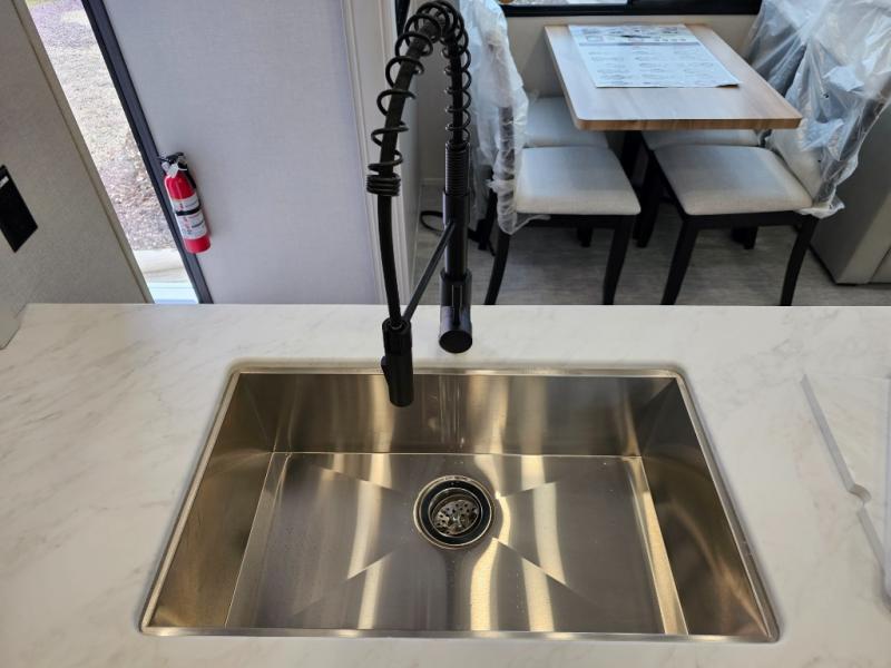 Fully equipped kitchen with 10 cu. ft. GE stainless 12V refrigerator