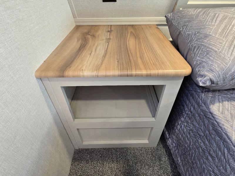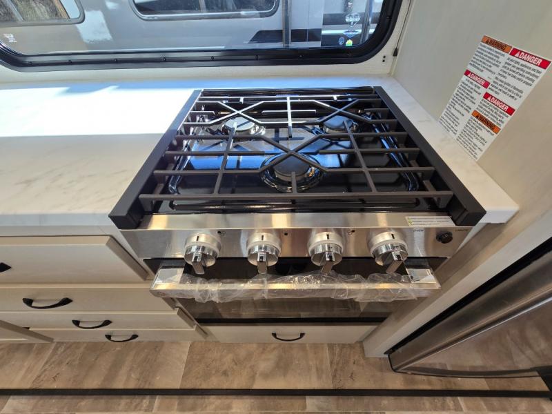 - Exterior Features: The electric awning with LED lights, Solid Step entry steps, and pass-through storage make outdoor living just as enjoyable as indoors.