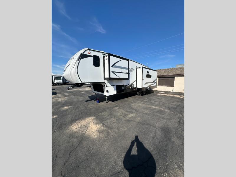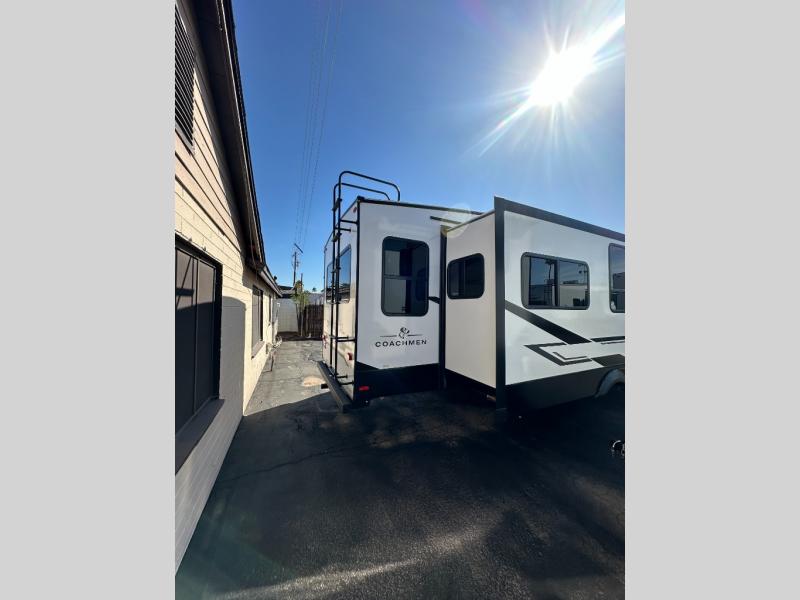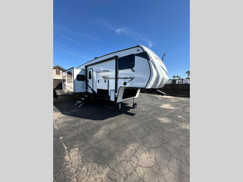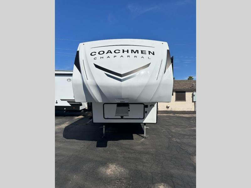 Comfort, convenience, and an easy haul is what you will find with each one of these Coachmen RV Chaparral Lite fifth wheels! Their Tri-Tex powder coated frame technology is up to 5X more weather resistant, and the dual-sided Azdel composite sidewall panels are ultra durable. The Road Armor suspension by Trail Air comes with heavy duty shackles and wet bolts so you can be sure it will hold up through every adventure, and you might want to add the exterior back-up and sideview camera prep for easy parking. You will feel right at home inside with slow rise blackout roller night shades, an upgraded Carbon and Walnut entertainment center, a modern high-rise kitchen faucet, and many more comforts! The exterior is just as inviting with its electric awning with LED lights, Solid Step entry steps, and pass-through storage for all your gear!