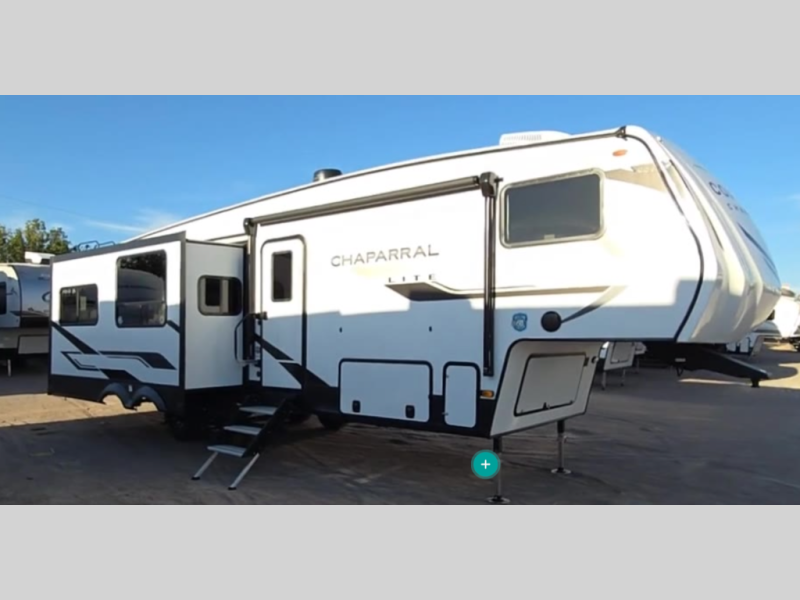 Comfort, convenience, and an easy haul is what you will find with each one of these Coachmen RV Chaparral Lite fifth wheels! Their Tri-Tex powder coated frame technology is up to 5X more weather resistant, and the dual-sided Azdel composite sidewall panels are ultra durable. The Road Armor suspension by Trail Air comes with heavy duty shackles and wet bolts so you can be sure it will hold up through every adventure, and you might want to add the exterior back-up and sideview camera prep for easy parking. You will feel right at home inside with slow rise blackout roller night shades, an upgraded Carbon and Walnut entertainment center, a modern high-rise kitchen faucet, and many more comforts! The exterior is just as inviting with its electric awning with LED lights, Solid Step entry steps, and pass-through storage for all your gear!