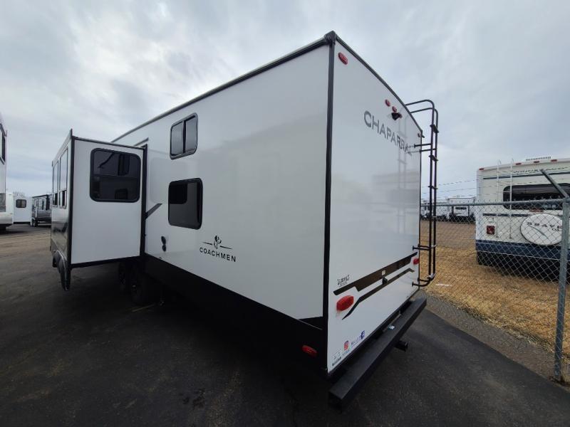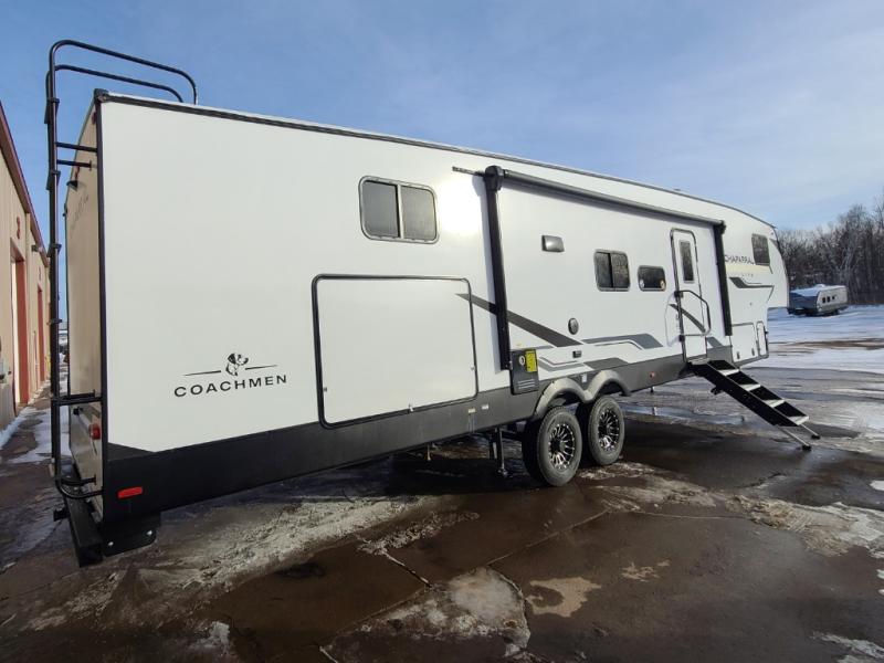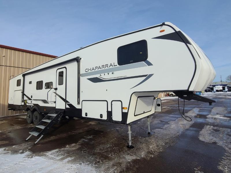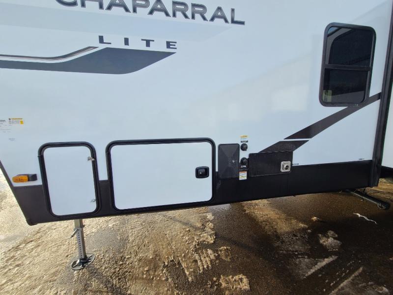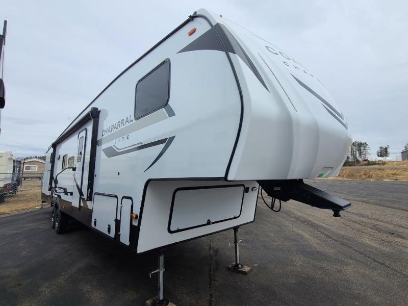 Comfort, convenience, and an easy haul is what you will find with each one of these Coachmen RV Chaparral Lite fifth wheels! Their Tri-Tex powder coated frame technology is up to 5X more weather resistant, and the dual-sided Azdel composite sidewall panels are ultra durable. The Road Armor suspension by Trail Air comes with heavy duty shackles and wet bolts so you can be sure it will hold up through every adventure, and you might want to add the exterior back-up and sideview camera prep for easy parking. You will feel right at home inside with slow rise blackout roller night shades, an upgraded Carbon and Walnut entertainment center, a modern high-rise kitchen faucet, and many more comforts! The exterior is just as inviting with its electric awning with LED lights, Solid Step entry steps, and pass-through storage for all your gear!