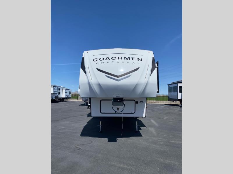 Comfort, convenience, and an easy haul is what you will find with each one of these Coachmen RV Chaparral Lite fifth wheels! Their Tri-Tex powder coated frame technology is up to 5X more weather resistant, and the dual-sided Azdel composite sidewall panels are ultra durable. The Road Armor suspension by Trail Air comes with heavy duty shackles and wet bolts so you can be sure it will hold up through every adventure, and you might want to add the exterior back-up and sideview camera prep for easy parking. You will feel right at home inside with slow rise blackout roller night shades, an upgraded Carbon and Walnut entertainment center, a modern high-rise kitchen faucet, and many more comforts! The exterior is just as inviting with its electric awning with LED lights, Solid Step entry steps, and pass-through storage for all your gear!
