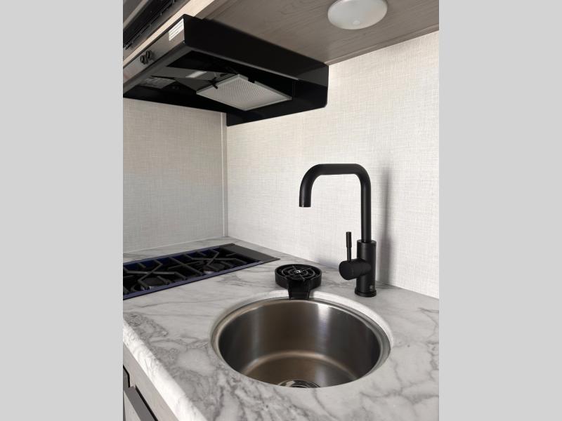 Outside, enjoy the shade of the power awning with LED lighting, access gear through exterior storage compartments, and clean up easily with the outdoor shower. With a UVW of just 2,499 lbs and a width of only 7.5 feet, it’s designed to be towable by a wide range of vehicles—no heavy-duty truck needed.