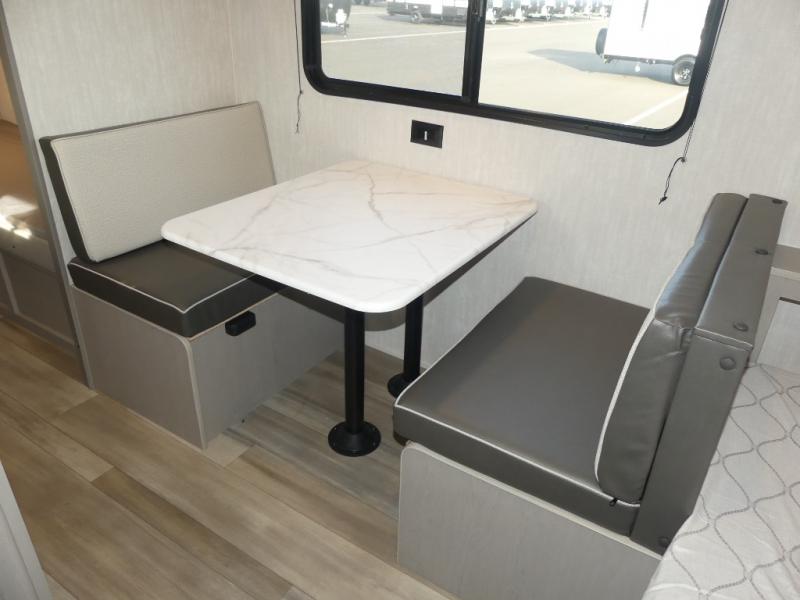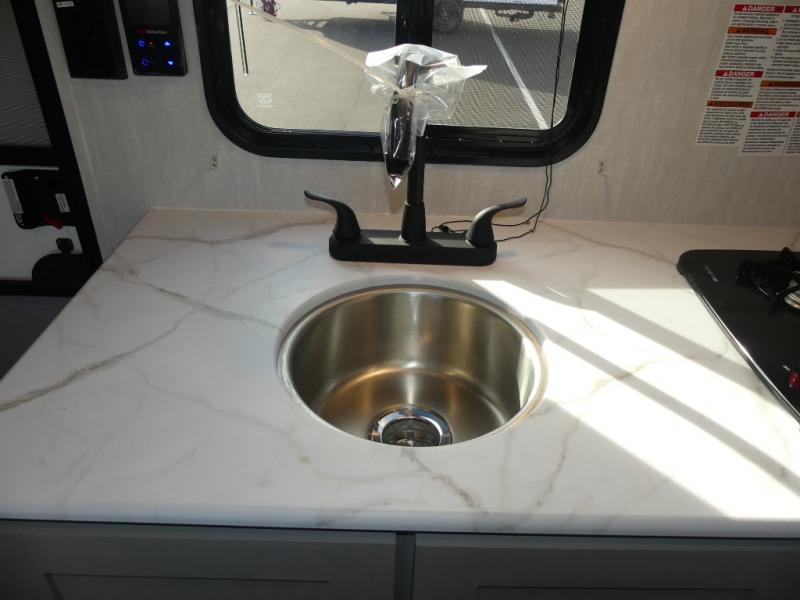 You can sleep five people in this Clipper 3K Series travel trailer with the 54" x 74" bed at the front, the booth dinette, and the 28" x 72" bunks. There is a private bathroom that everyone can use to stay clean, and the chef of the group can cook meals on the cooktop in the kitchen. There is a storage cabinet in the kitchen plus overhead cabinets for even more storage, and there is a pass-through exterior storage for larger gear. When it's raining outside, simply put out the 10' power awning for protection.