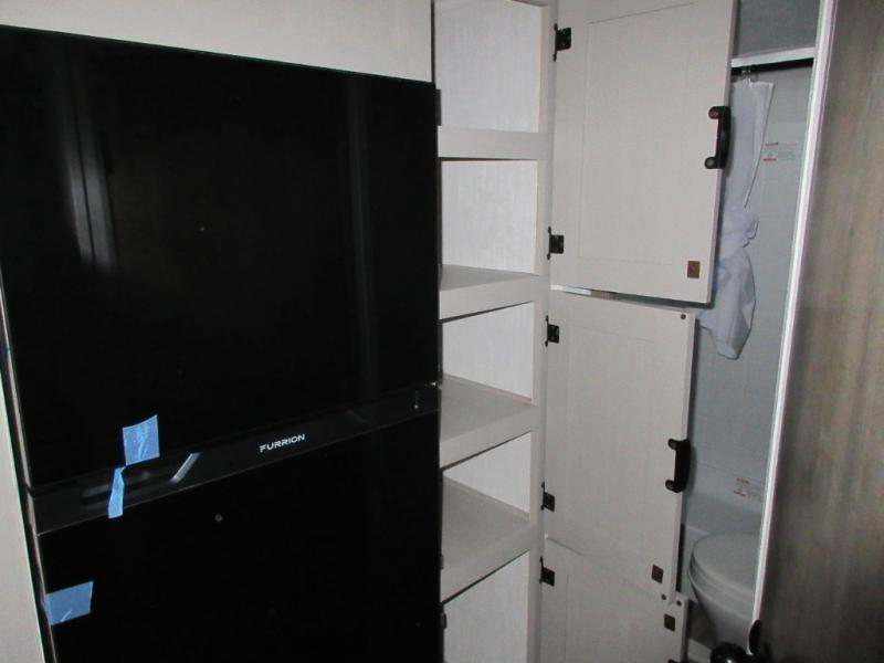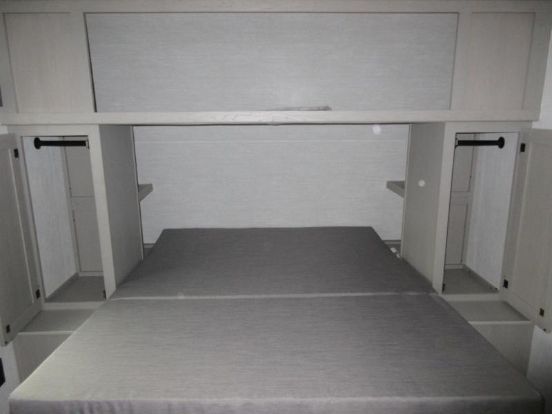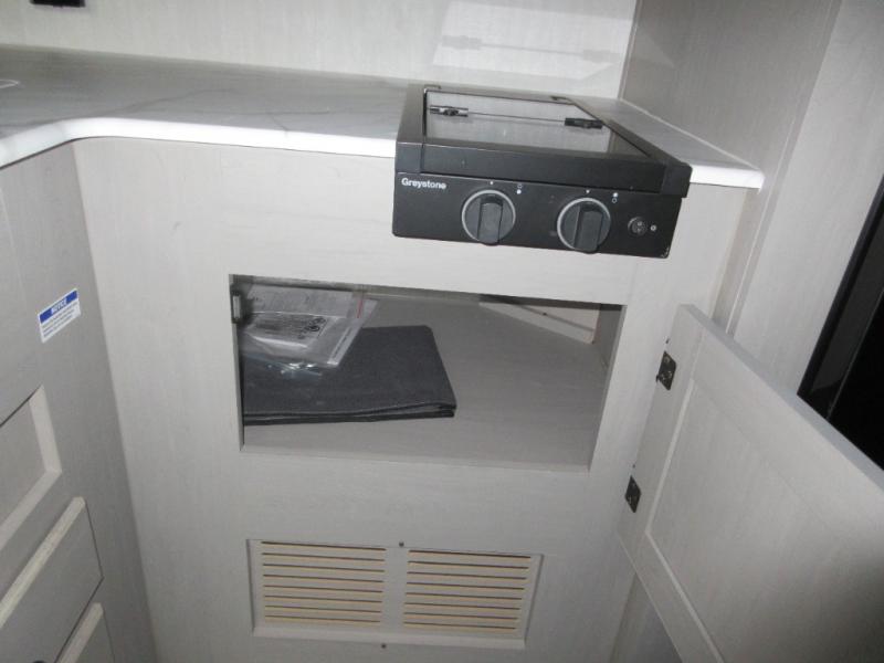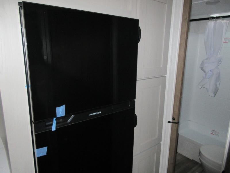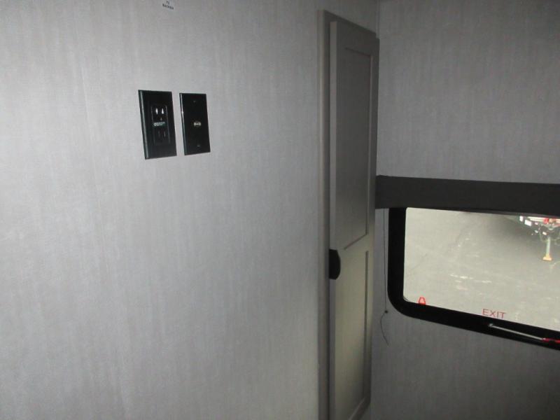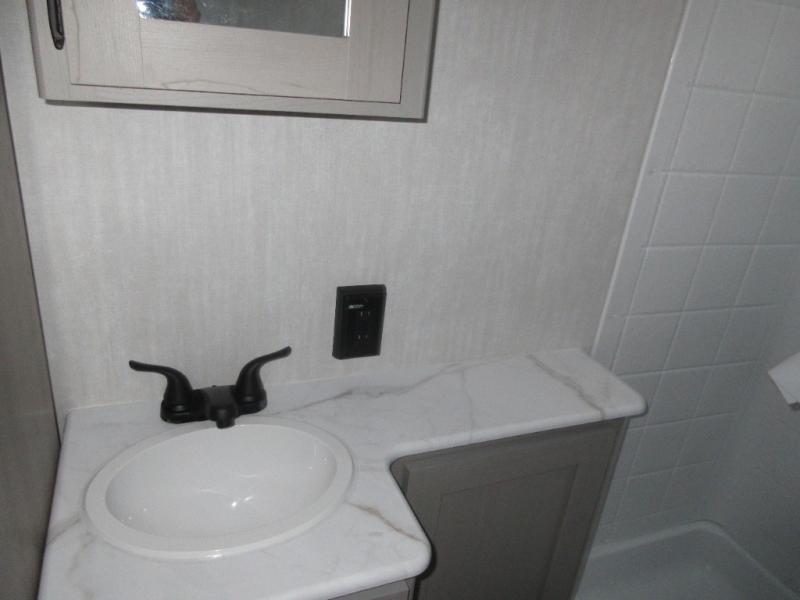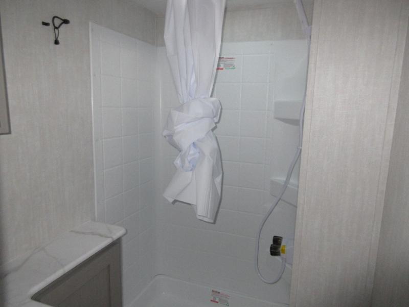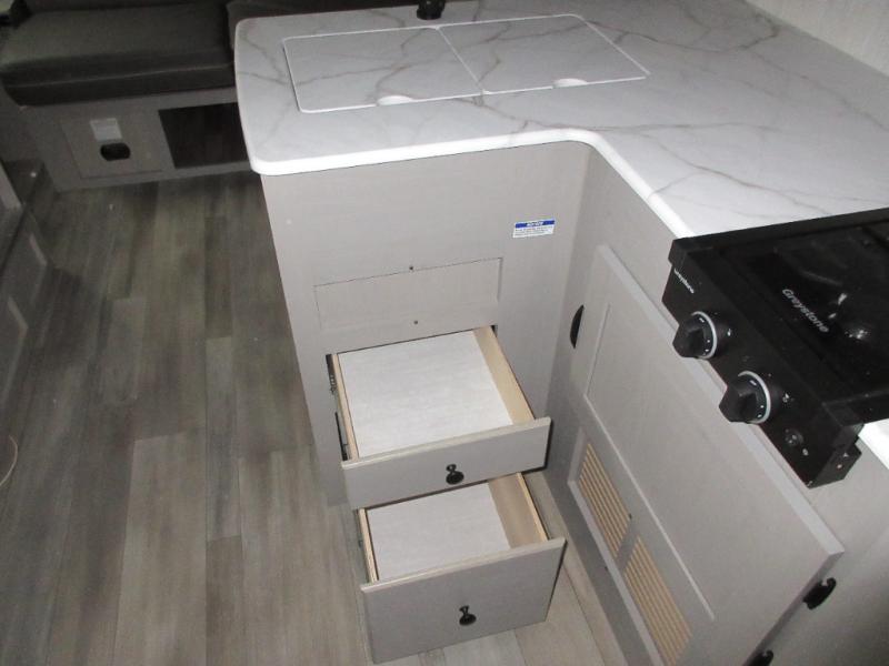 This versatile travel trailer is the perfect choice if you plan to camp with friends and family. The Murphy bed can be folded up during the day so you can relax on the jack knife sofa, and there is also a U-shaped dinette for dining space and game night. The rear corner den includes a second jack knife sofa within a slide out for more space plus a countertop where you can keep your drinks off of the floor. A full kitchen, complete with a three burner cooktop, microwave and 12V refrigerator will let you cook and store food. And don't overlook the full bath with a vanity with a sink, a toilet, and a 24" x 36" shower. There is even storage for clean towels and toiletries!