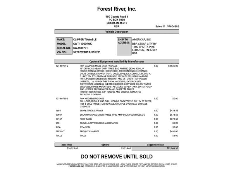 Coachmen Clipper ROK travel trailer 11000ROK highlights: