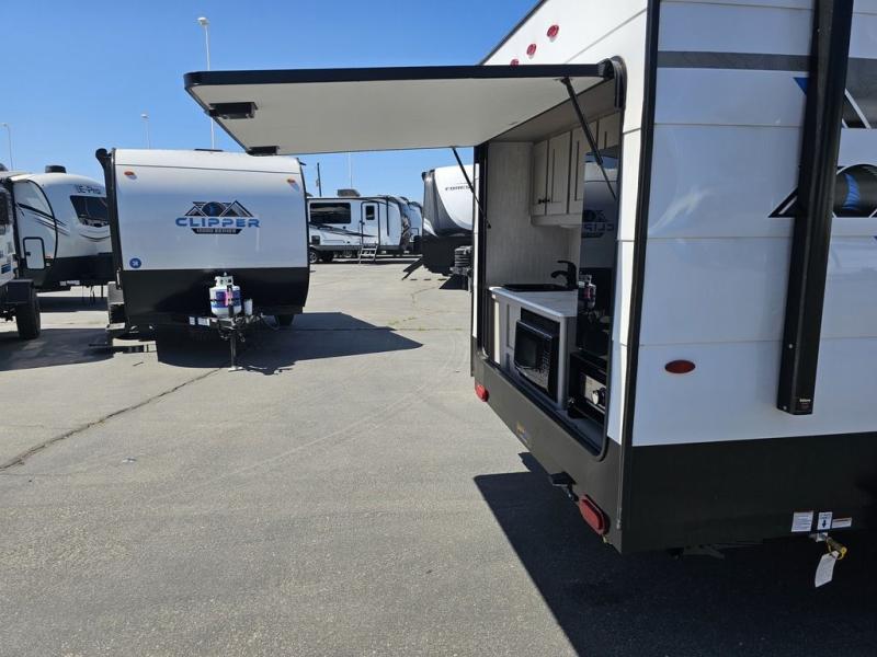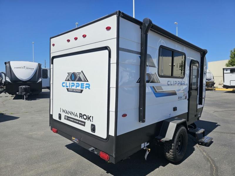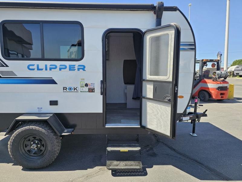 These Clipper ROK travel trailers allow you to camp anywhere you want, even off the beaten path a bit. Each model features electric brakes, easy lube axles, and 15" off-road heavy duty tires. There are frame-mounted stabilizer jacks to help keep your unit secure, and the outside shower with hot/cold water will come in handy when rinsing off hiking gear. A 5K BTU A/C unit and 20K BTU propane furnace will keep you comfortable as you camp, and there are 12V outlets along with 110V outlets to keep your electronics charged. An optional roof top tent can be added if you're needing additional sleeping space, and if you choose the optional Solar Package with a 200W panel and 30A solar controller, you can enjoy off-grid capabilities!