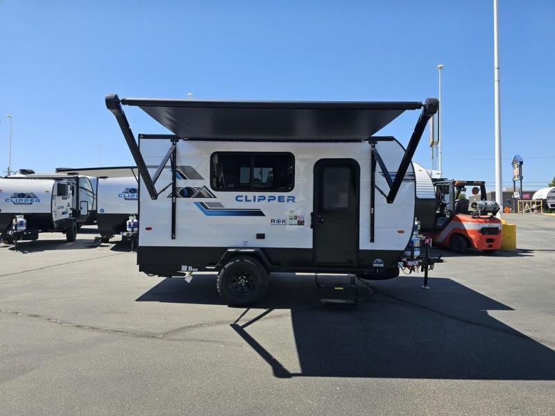 These Clipper ROK travel trailers allow you to camp anywhere you want, even off the beaten path a bit. Each model features electric brakes, easy lube axles, and 15" off-road heavy duty tires. There are frame-mounted stabilizer jacks to help keep your unit secure, and the outside shower with hot/cold water will come in handy when rinsing off hiking gear. A 5K BTU A/C unit and 20K BTU propane furnace will keep you comfortable as you camp, and there are 12V outlets along with 110V outlets to keep your electronics charged. An optional roof top tent can be added if you're needing additional sleeping space, and if you choose the optional Solar Package with a 200W panel and 30A solar controller, you can enjoy off-grid capabilities!