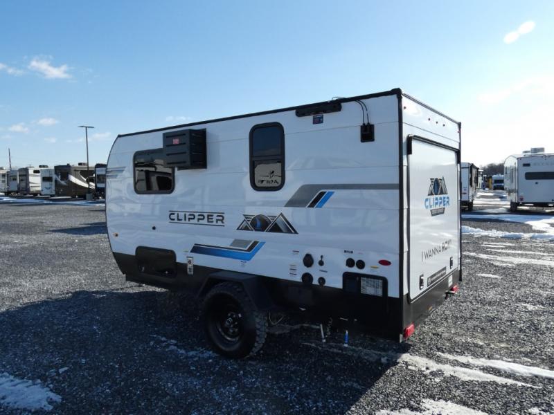 These Clipper ROK off-road teardrop trailers allow you to camp anywhere you want, even off the beaten path a bit. Each model features electric brakes, easy lube axles, and 15" off-road heavy duty tires. There are frame-mounted stabilizer jacks to help keep your unit secure, and the outside shower with hot/cold water will come in handy when rinsing off hiking gear. A 5K BTU A/C unit and 20K BTU propane furnace will keep you comfortable as you camp, and there are 12V outlets along with 110V outlets to keep your electronics charged.
