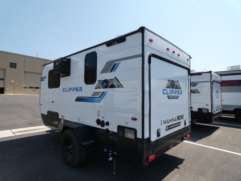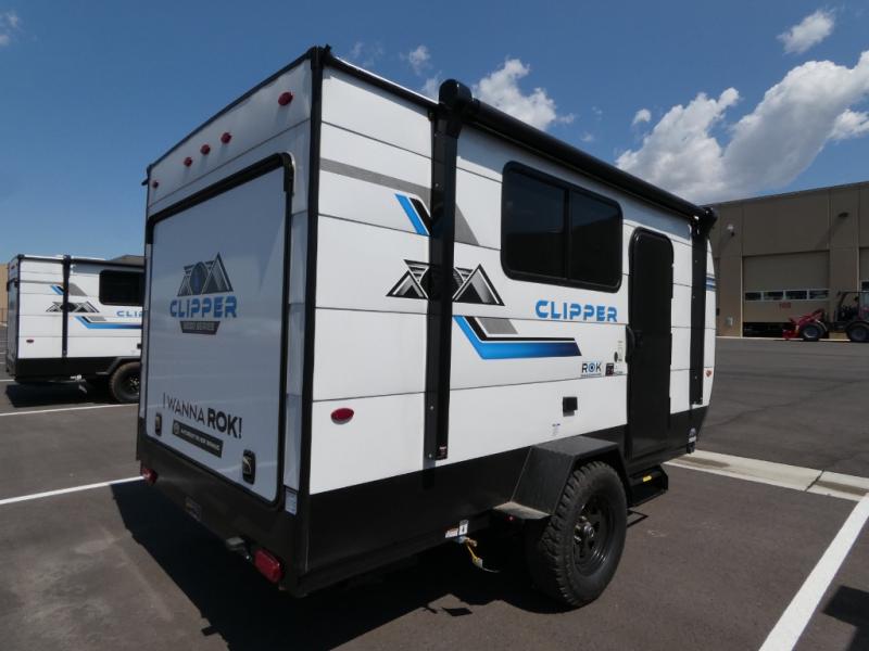 These Clipper ROK travel trailers allow you to camp anywhere you want, even off the beaten path a bit. Each model features electric brakes, easy lube axles, and 15" off-road heavy duty tires. There are frame-mounted stabilizer jacks to help keep your unit secure, and the outside shower with hot/cold water will come in handy when rinsing off hiking gear. A 5K BTU A/C unit and 20K BTU propane furnace will keep you comfortable as you camp, and there are 12V outlets along with 110V outlets to keep your electronics charged.