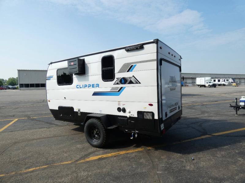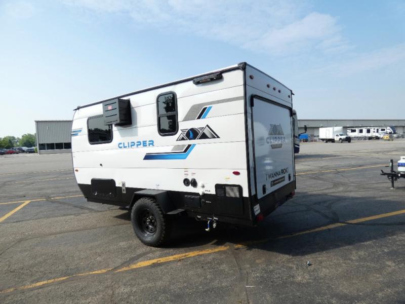 These Clipper ROK travel trailers allow you to camp anywhere you want, even off the beaten path a bit. Each model features electric brakes, easy lube axles, and 15" off-road heavy duty tires. There are frame-mounted stabilizer jacks to help keep your unit secure, and the outside shower with hot/cold water will come in handy when rinsing off hiking gear. A 5K BTU A/C unit and 20K BTU propane furnace will keep you comfortable as you camp, and there are 12V outlets along with 110V outlets to keep your electronics charged.