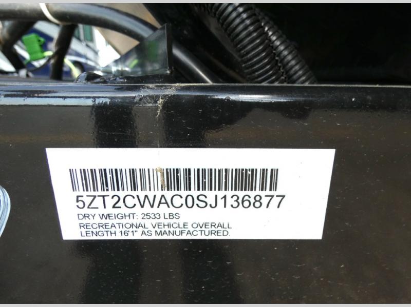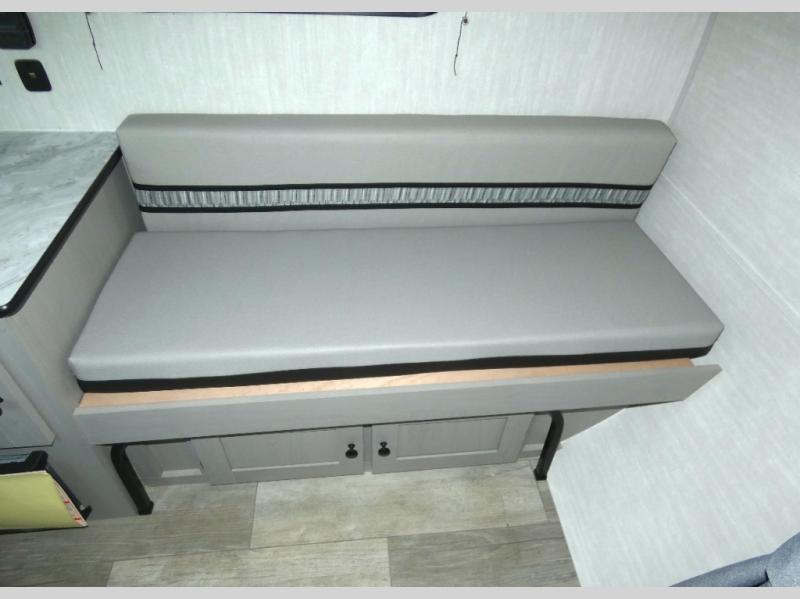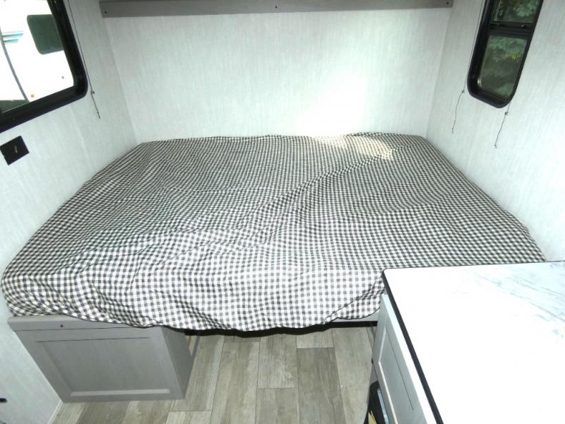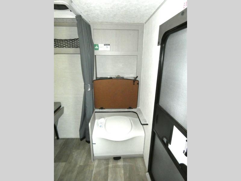 When you want to explore choose this travel trailer for your basic off-road adventure needs and a bit more by offering you a 54" X 74" flip-up bed with storage beneath, and gaucho seating that pulls out into a bed for an additional camper at night. There is front and rear overhead cabinetry for storage, and a cassette toilet for added convenience especially at night. A rear hatch camp kitchen provides a place for you to create meals and snacks while you explore. There is a slide-out griddle and grill combo cooktop, a 3.3 cu. ft. 12-volt refrigerator for your cold items, a single sink, and two burner cooktop, plus a microwave oven. A 9' power awning creates a bit of added outdoor living space where you can set up your camp chairs.
