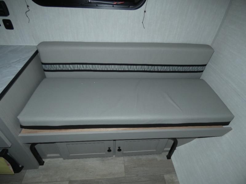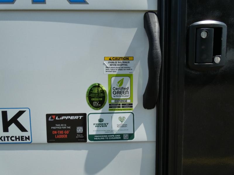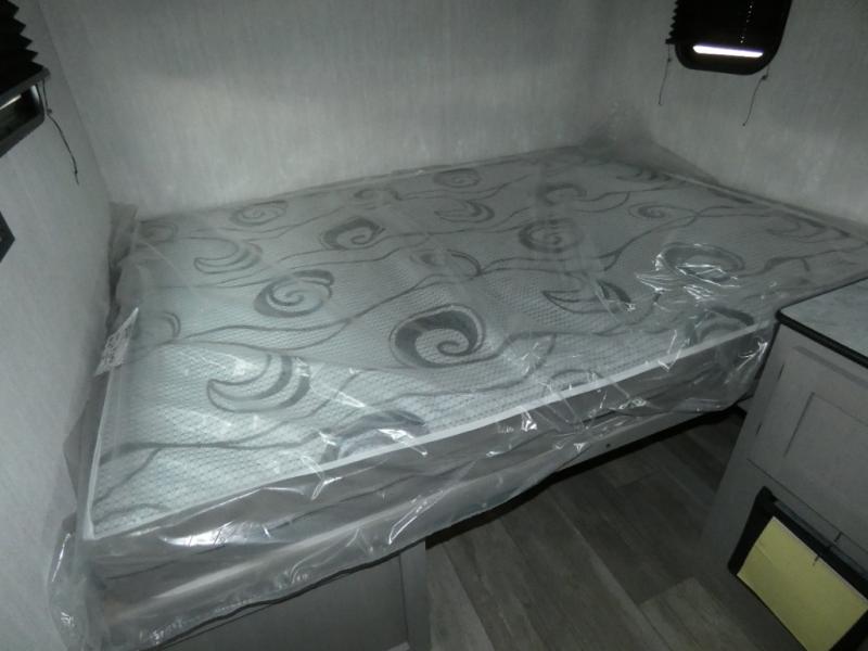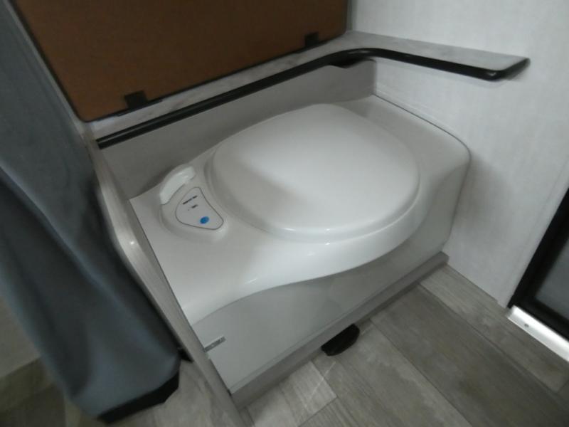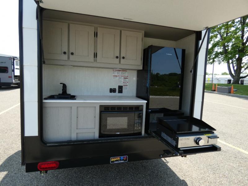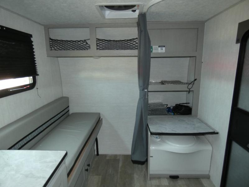 When you want to explore choose this travel trailer for your basic off-road adventure needs and a bit more by offering you a 54" X 74" flip-up bed with storage beneath, and gaucho seating that pulls out into a bed for an additional camper at night. There is front and rear overhead cabinetry for storage, and a cassette toilet for added convenience especially at night. A rear hatch camp kitchen provides a place for you to create meals and snacks while you explore. There is a slide-out griddle and grill combo cooktop, a 3.3 cu. ft. 12-volt refrigerator for your cold items, a single sink, and two burner cooktop, plus a microwave oven. A 9' power awning creates a bit of added outdoor living space where you can set up your camp chairs.