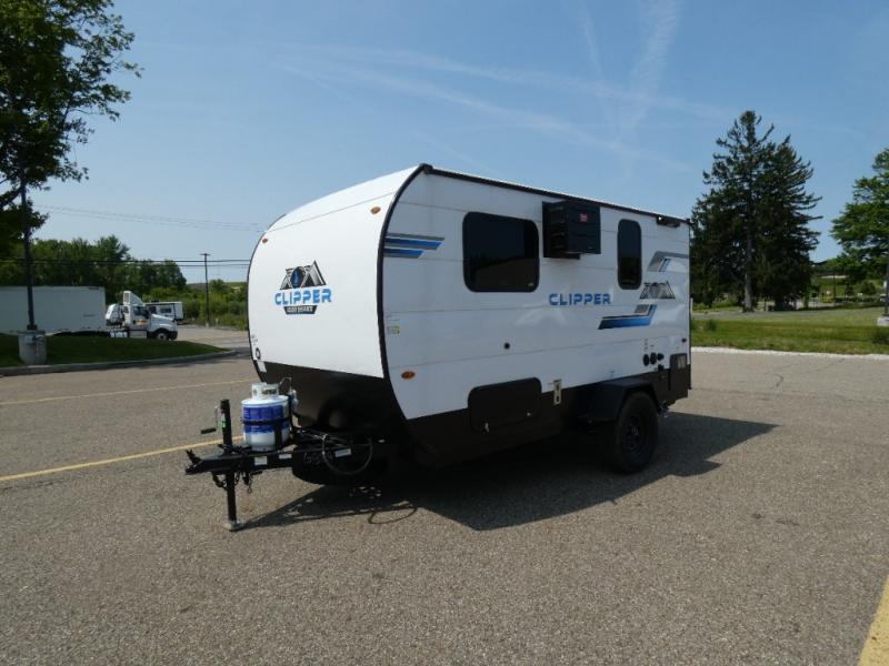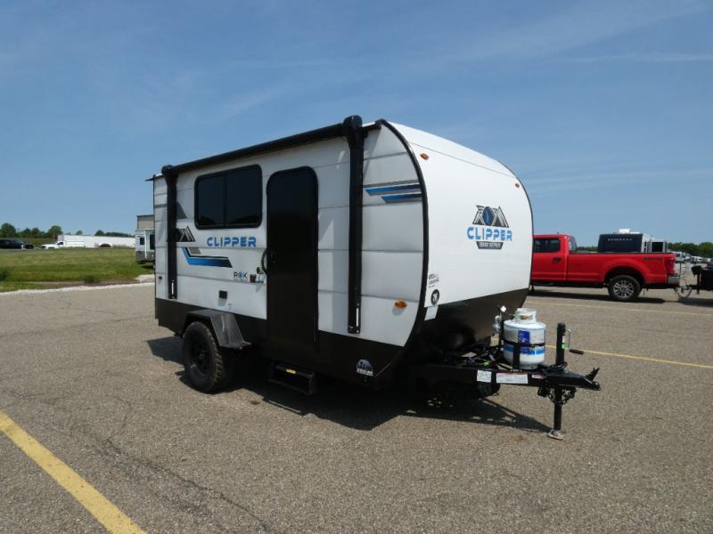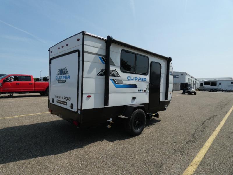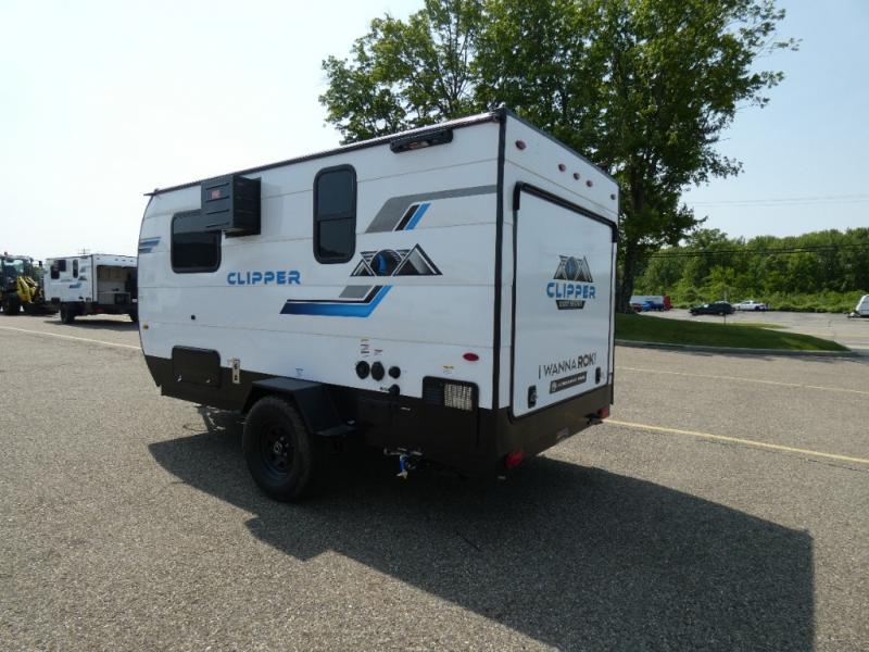 These Clipper ROK travel trailers allow you to camp anywhere you want, even off the beaten path a bit. Each model features electric brakes, easy lube axles, and 15" off-road heavy duty tires. There are frame-mounted stabilizer jacks to help keep your unit secure, and the outside shower with hot/cold water will come in handy when rinsing off hiking gear. A 5K BTU A/C unit and 20K BTU propane furnace will keep you comfortable as you camp, and there are 12V outlets along with 110V outlets to keep your electronics charged.