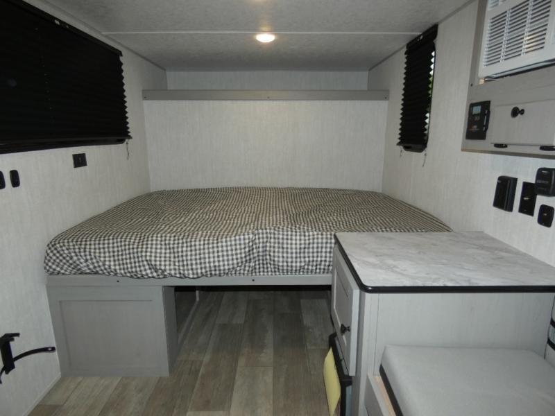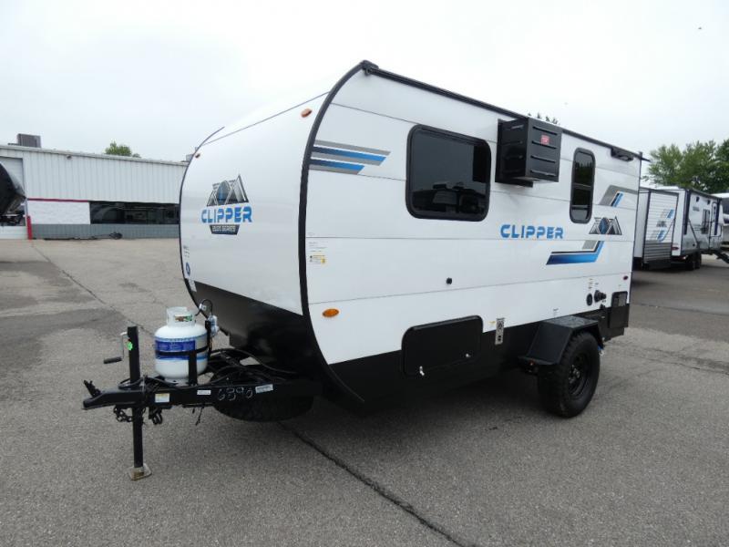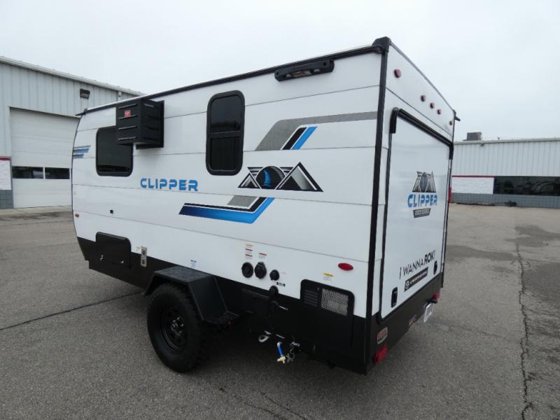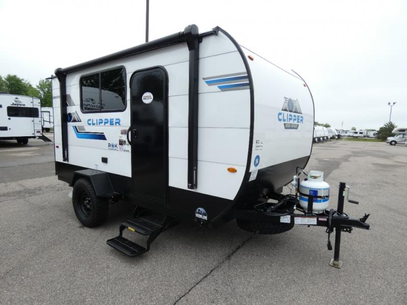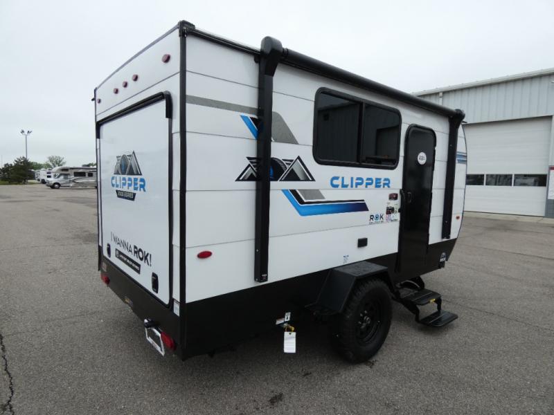 These Clipper ROK travel trailers allow you to camp anywhere you want, even off the beaten path a bit. Each model features electric brakes, easy lube axles, and 15" off-road heavy duty tires. There are frame-mounted stabilizer jacks to help keep your unit secure, and the outside shower with hot/cold water will come in handy when rinsing off hiking gear. A 5K BTU A/C unit and 20K BTU propane furnace will keep you comfortable as you camp, and there are 12V outlets along with 110V outlets to keep your electronics charged.