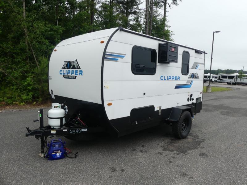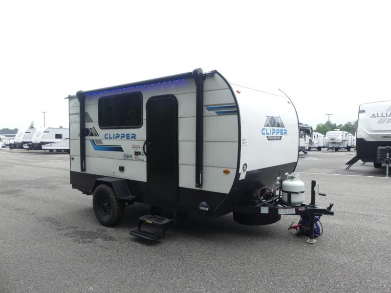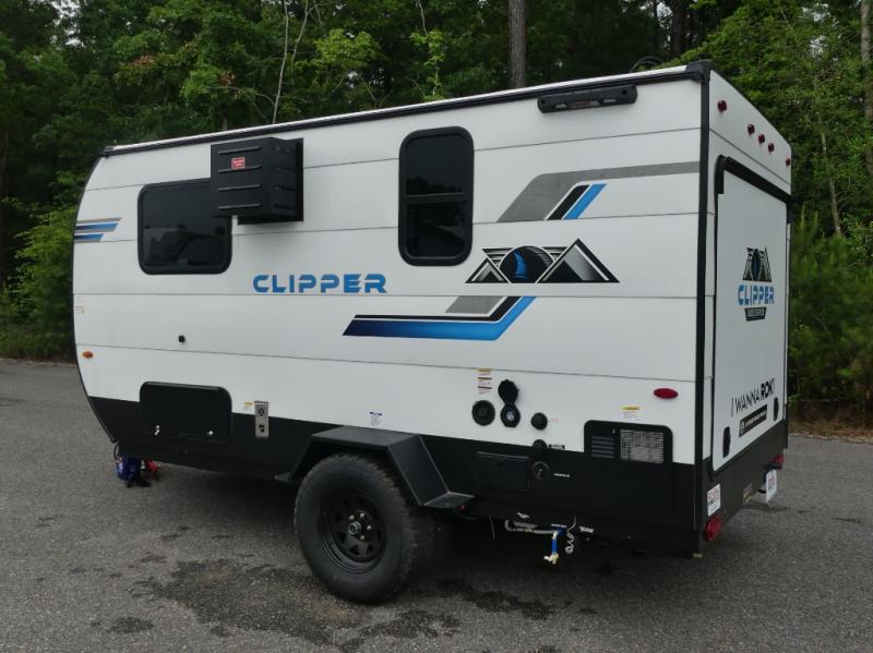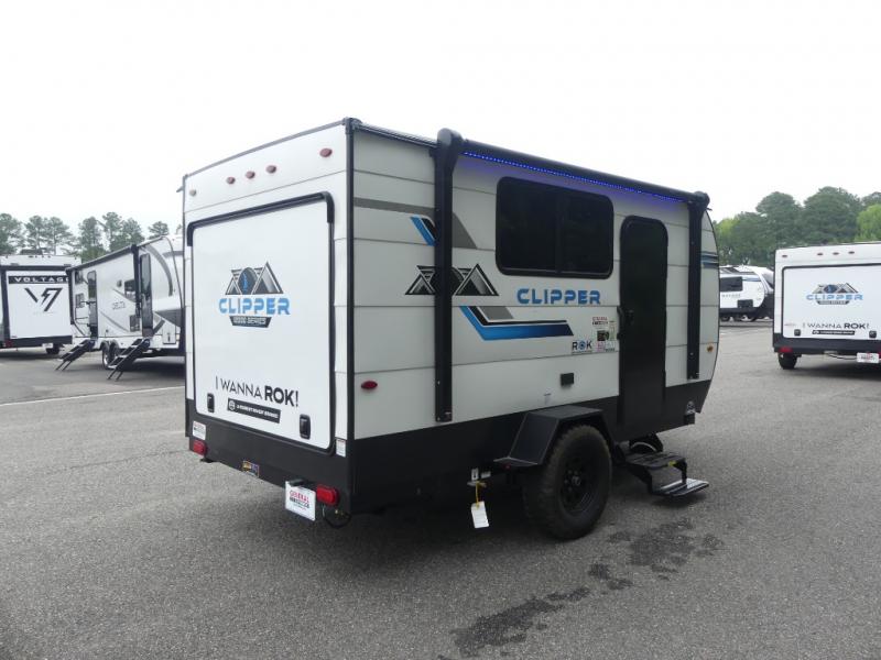 These Clipper ROK travel trailers allow you to camp anywhere you want, even off the beaten path a bit. Each model features electric brakes, easy lube axles, and 15" off-road heavy duty tires. There are frame-mounted stabilizer jacks to help keep your unit secure, and the outside shower with hot/cold water will come in handy when rinsing off hiking gear. A 5K BTU A/C unit and 20K BTU propane furnace will keep you comfortable as you camp, and there are 12V outlets along with 110V outlets to keep your electronics charged.