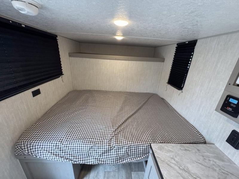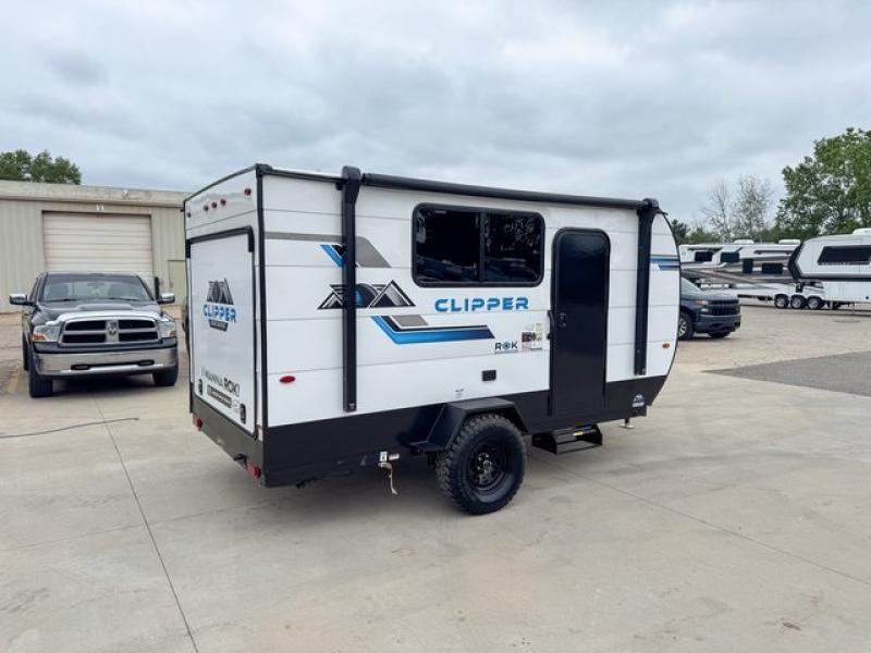 These Clipper ROK travel trailers allow you to camp anywhere you want, even off the beaten path a bit. Each model features electric brakes, easy lube axles, and 15" off-road heavy duty tires. There are frame-mounted stabilizer jacks to help keep your unit secure, and the outside shower with hot/cold water will come in handy when rinsing off hiking gear. A 5K BTU A/C unit and 20K BTU propane furnace will keep you comfortable as you camp, and there are 12V outlets along with 110V outlets to keep your electronics charged. An optional roof top tent can be added if you're needing additional sleeping space, and if you choose the optional Solar Package with a 200W panel and 30A solar controller, you can enjoy off-grid capabilities!