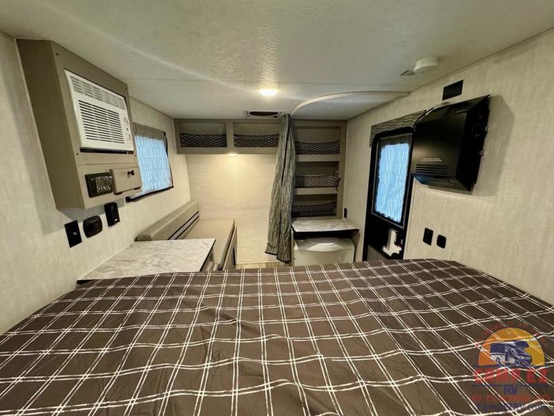 These Clipper ROK travel trailers allow you to camp anywhere you want, even off the beaten path a bit. Each model features electric brakes, easy lube axles, and 15" off-road heavy duty tires. There are frame-mounted stabilizer jacks to help keep your unit secure, and the outside shower with hot/cold water will come in handy when rinsing off hiking gear. A 5K BTU A/C unit and 20K BTU propane furnace will keep you comfortable as you camp, and there are 12V outlets along with 110V outlets to keep your electronics charged. An optional roof top tent can be added if you're needing additional sleeping space, and if you choose the optional Solar Package with a 200W panel and 30A solar controller, you can enjoy off-grid capabilities!