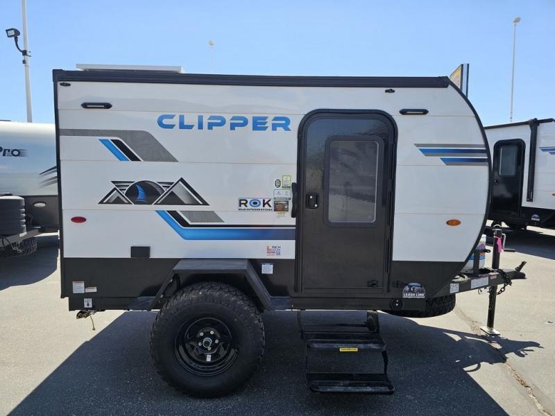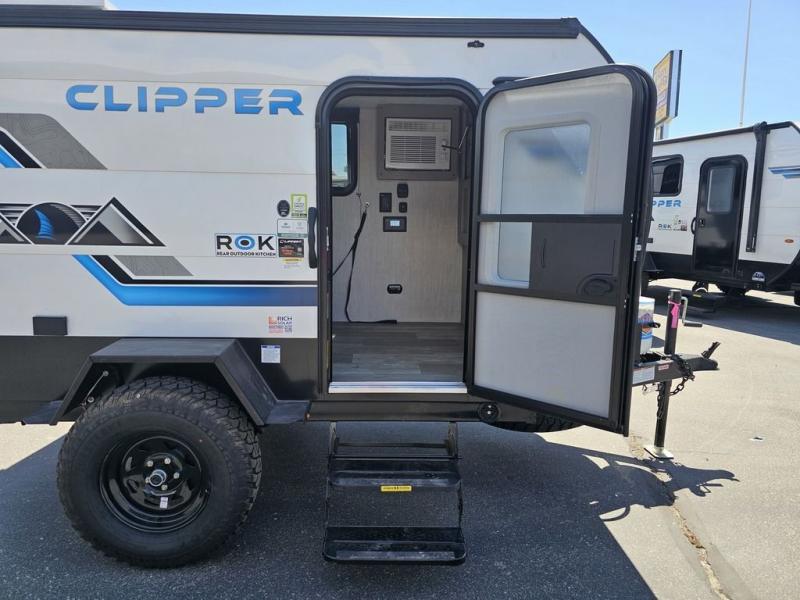 These Clipper ROK travel trailers allow you to camp anywhere you want, even off the beaten path a bit. Each model features electric brakes, easy lube axles, and 15" off-road heavy duty tires. There are frame-mounted stabilizer jacks to help keep your unit secure, and the outside shower with hot/cold water will come in handy when rinsing off hiking gear. A 5K BTU A/C unit and 20K BTU propane furnace will keep you comfortable as you camp, and there are 12V outlets along with 110V outlets to keep your electronics charged. An optional roof top tent can be added if you're needing additional sleeping space, and if you choose the optional Solar Package with a 200W panel and 30A solar controller, you can enjoy off-grid capabilities!