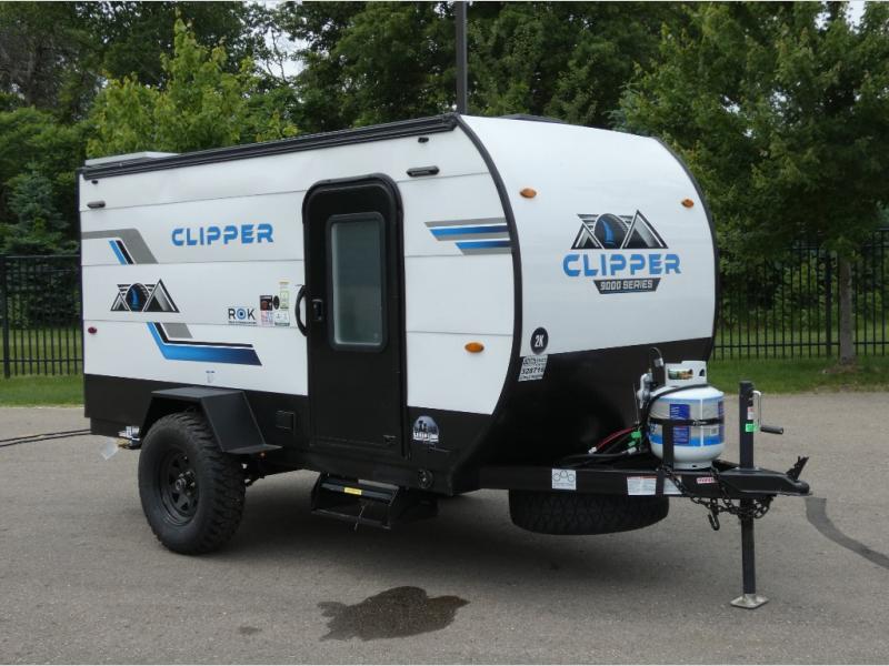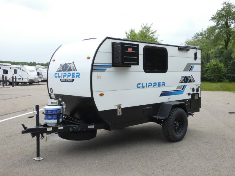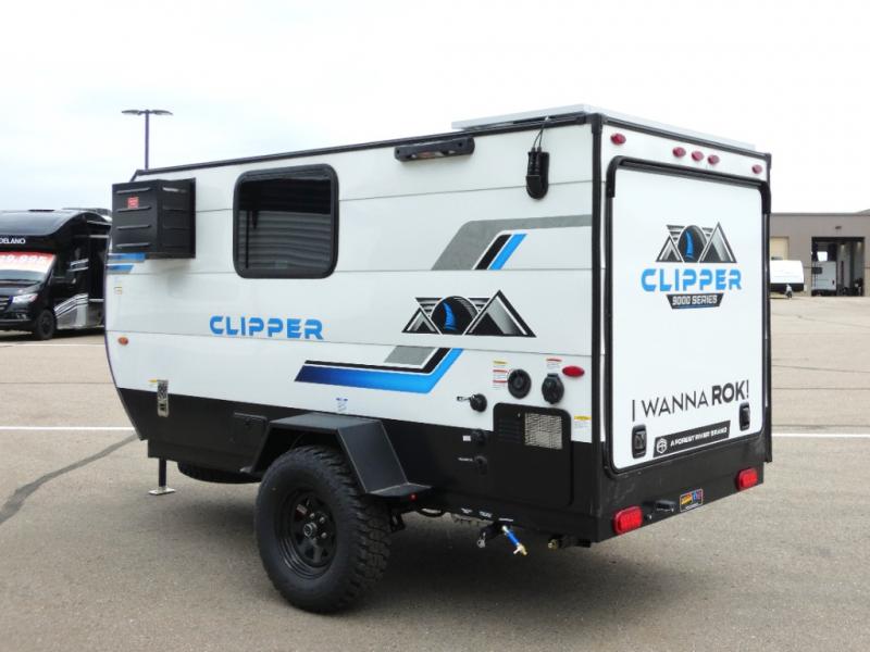 These Clipper ROK travel trailers allow you to camp anywhere you want, even off the beaten path a bit. Each model features electric brakes, easy lube axles, and 15" off-road heavy duty tires. There are frame-mounted stabilizer jacks to help keep your unit secure, and the outside shower with hot/cold water will come in handy when rinsing off hiking gear. A 5K BTU A/C unit and 20K BTU propane furnace will keep you comfortable as you camp, and there are 12V outlets along with 110V outlets to keep your electronics charged.