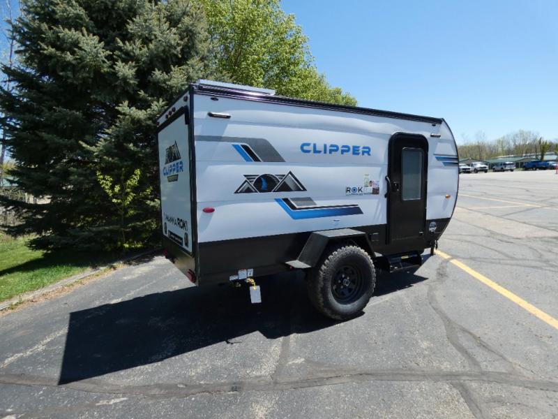 These Clipper ROK travel trailers allow you to camp anywhere you want, even off the beaten path a bit. Each model features electric brakes, easy lube axles, and 15" off-road heavy duty tires. There are frame-mounted stabilizer jacks to help keep your unit secure, and the outside shower with hot/cold water will come in handy when rinsing off hiking gear. A 5K BTU A/C unit and 20K BTU propane furnace will keep you comfortable as you camp, and there are 12V outlets along with 110V outlets to keep your electronics charged.