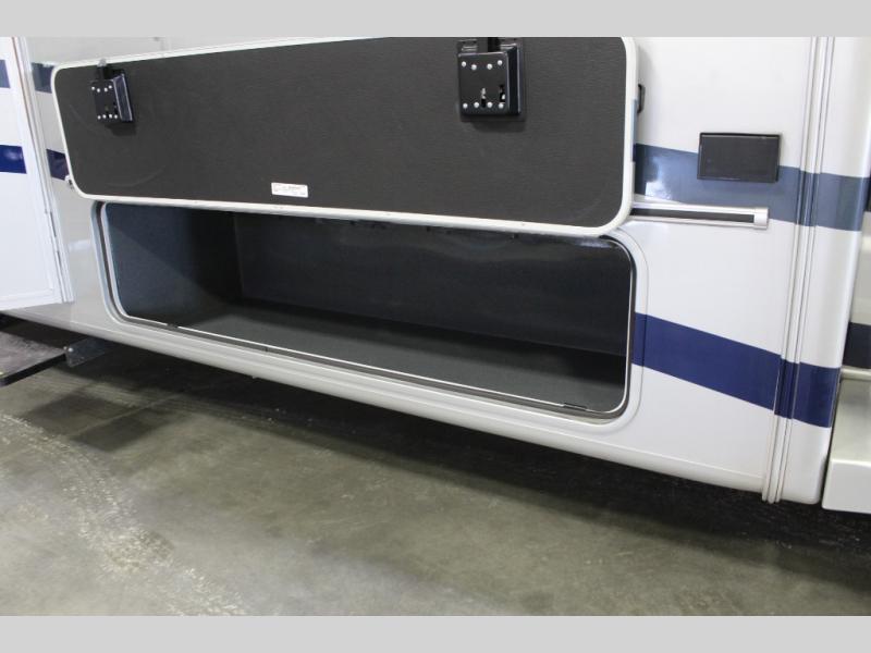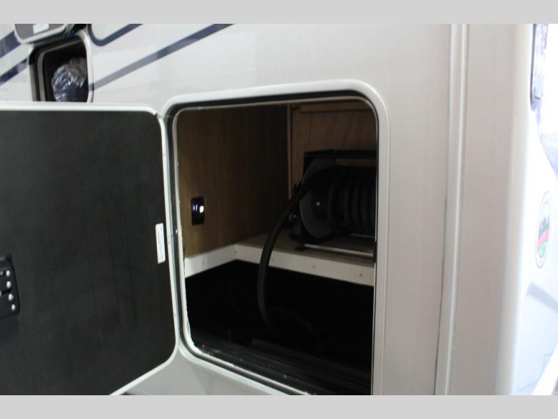 You will travel the highway in true comfort with this motorhome! After a long day of traveling, you can head to the rear private bedroom and lay down on the king bed slide across from a dresser with a 32" Smart TV and even an area prepped to add an optional washer and dryer. The separated bathroom allows one person to clean up in the 24" x 36" shower while another uses the private toilet and sink. The chef can prepare their best meals with the two burner induction cooktop, convection microwave, and 10 cu. ft. 12V double door refrigerator. Enjoy your meals at the free standing dinette with four chairs then let your stomach settle in one of the two recliners while you watch a show on the 39" Smart TV or you could head to the outside entertainment center with a TV/HDMI port/Bluetooth soundbar!