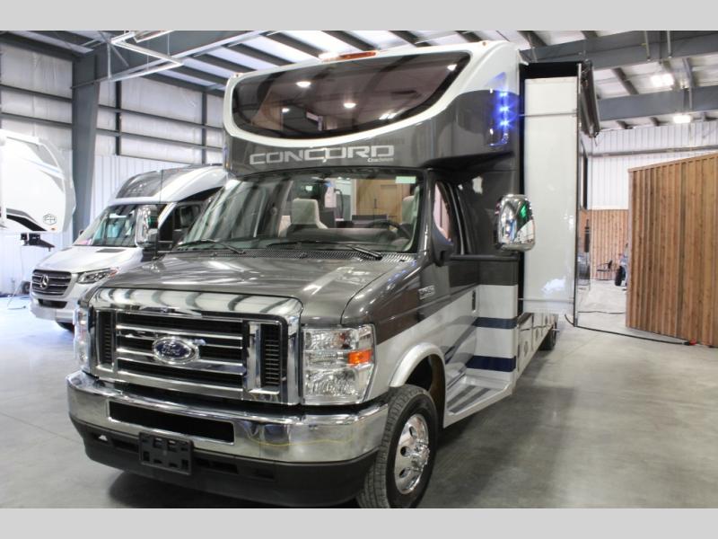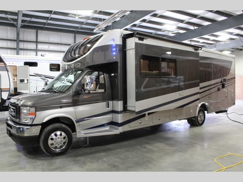Start traveling in a convenient and comfortable way with one of these Coachmen RV Concord Class C gas motorhomes! They are built on a Ford E-450 chassis with a 7.3L V8 engine to power you to every destination. The molded rear fiberglass cap has backup proximity sensors and the molded front fiberglass cap has an oversized window for you to clearly see your surroundings. An auto flex rear air ride suspension not only provides a smooth ride, but also an increased roll stability and consistent vehicle ride height. You will appreciate the Aqua View Showermiser system and tankless on demand water heater. Stay cool even on the hottest summer day with the dual 15,000 BTU A/C's with heat pumps. Come check out what else they have to offer!