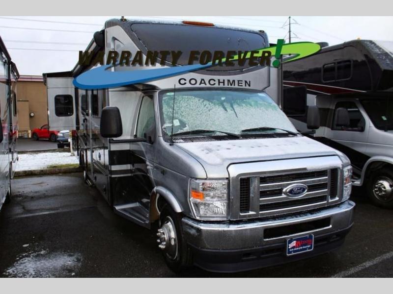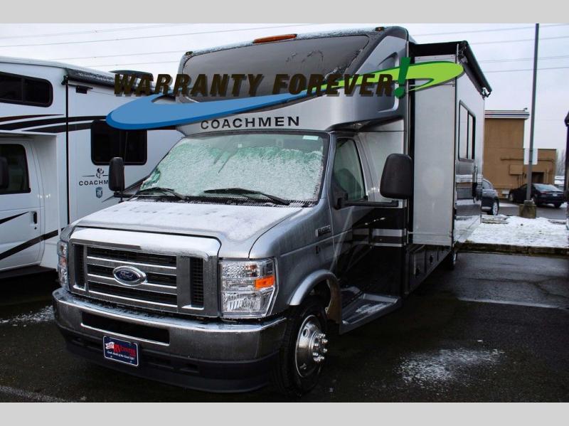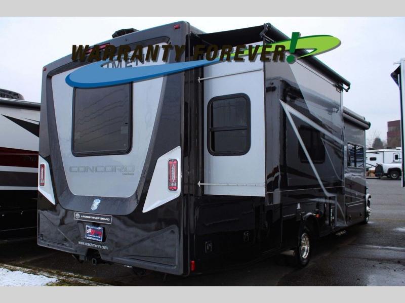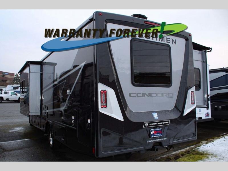 Start traveling in a convenient and comfortable way with one of these Coachmen RV Concord Class C gas motorhomes! They are built on a Ford E-450 chassis with a 7.3L V8 engine to power you to every destination. The molded rear fiberglass cap has backup proximity sensors and the molded front fiberglass cap has an oversized window for you to clearly see your surroundings. An auto flex rear air ride suspension not only provides a smooth ride, but also an increased roll stability and consistent vehicle ride height. You will appreciate the Aqua View Showermiser system and tankless on demand water heater. Stay cool even on the hottest summer day with the dual 15,000 BTU A/C's with heat pumps. Come check out what else they have to offer!