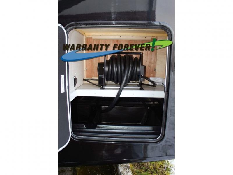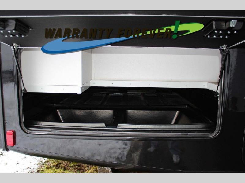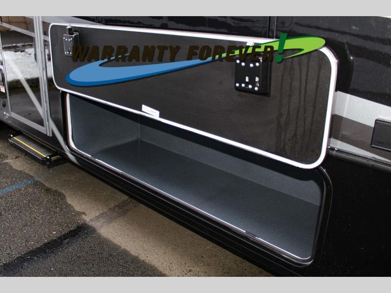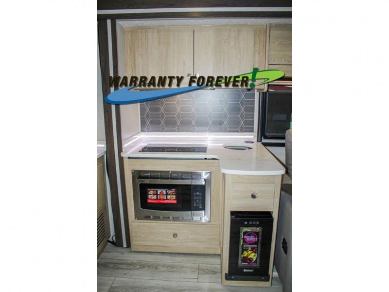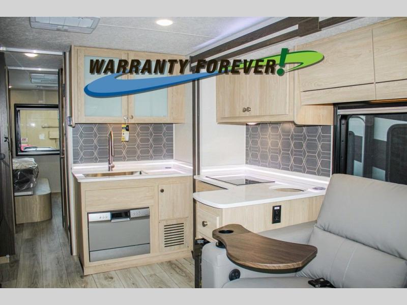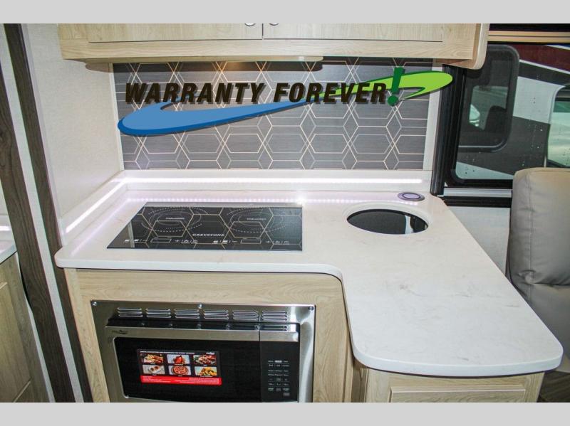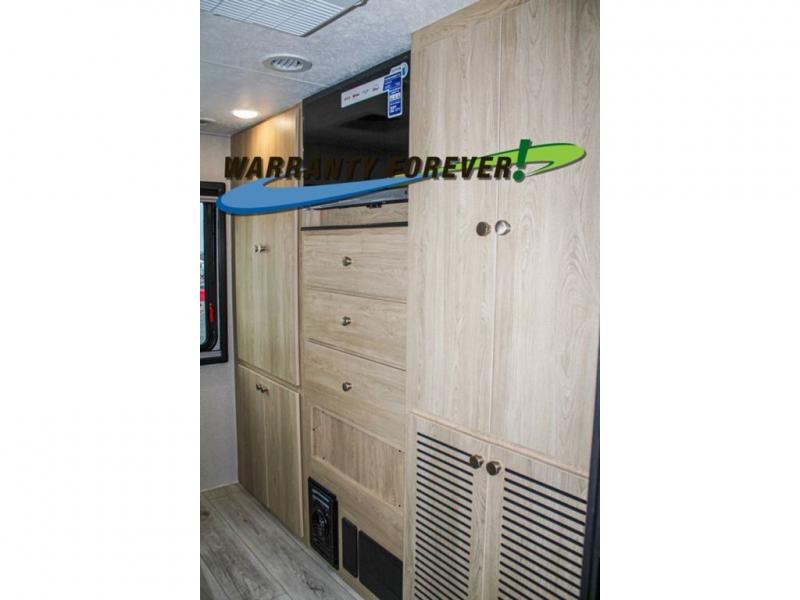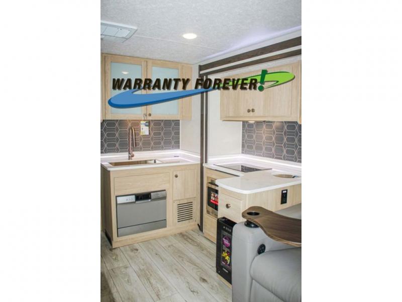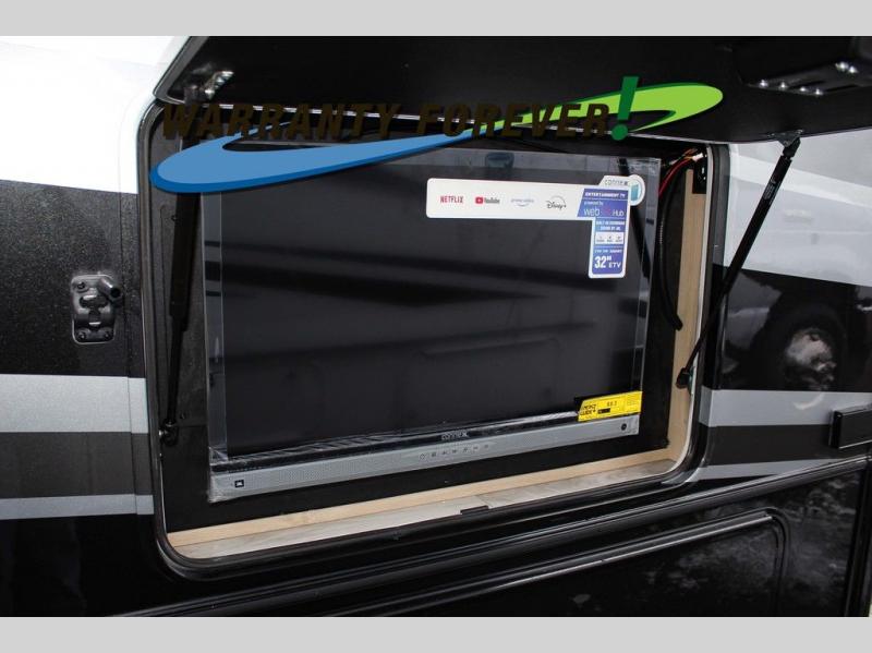 You will travel the highway in true comfort with this motorhome! After a long day of traveling, you can head to the rear private bedroom and lay down on the king bed slide across from a dresser with a 32" Smart TV and even an area prepped to add an optional washer and dryer. The separated bathroom allows one person to clean up in the 24" x 36" shower while another uses the private toilet and sink. The chef can prepare their best meals with the two burner induction cooktop, convection microwave, and 10 cu. ft. 12V double door refrigerator. Enjoy your meals at the free standing dinette with four chairs then let your stomach settle in one of the two recliners while you watch a show on the 39" Smart TV or you could head to the outside entertainment center with a TV/HDMI port/Bluetooth soundbar!