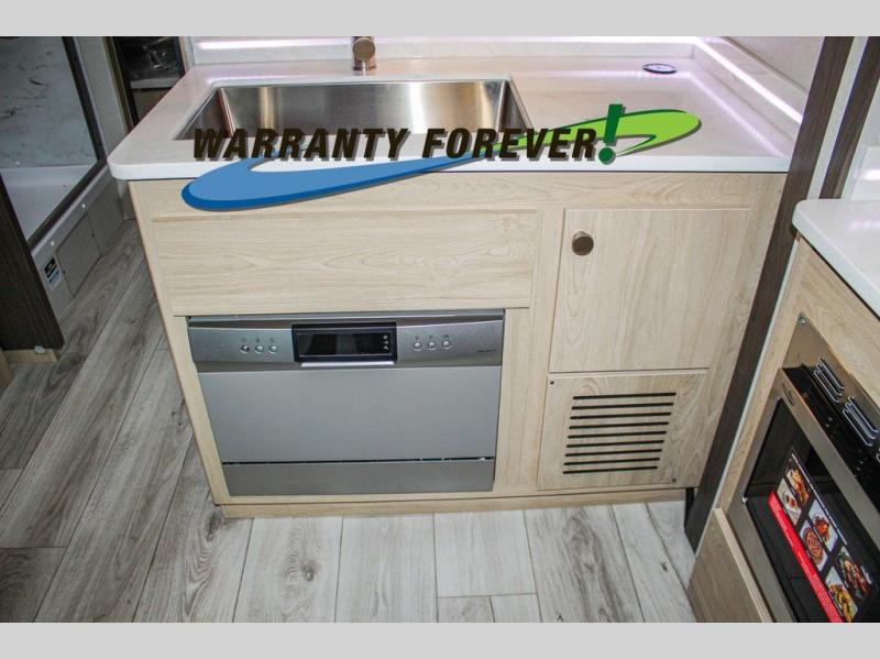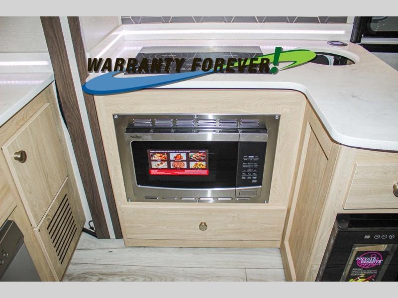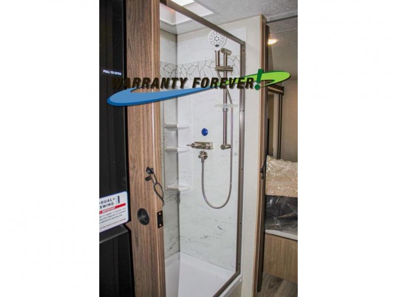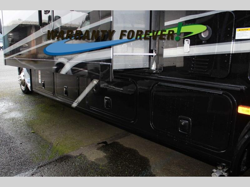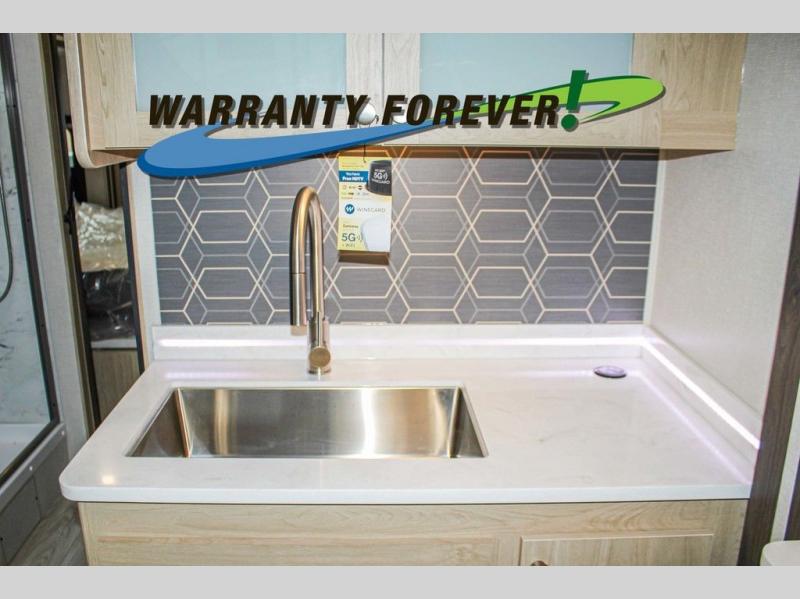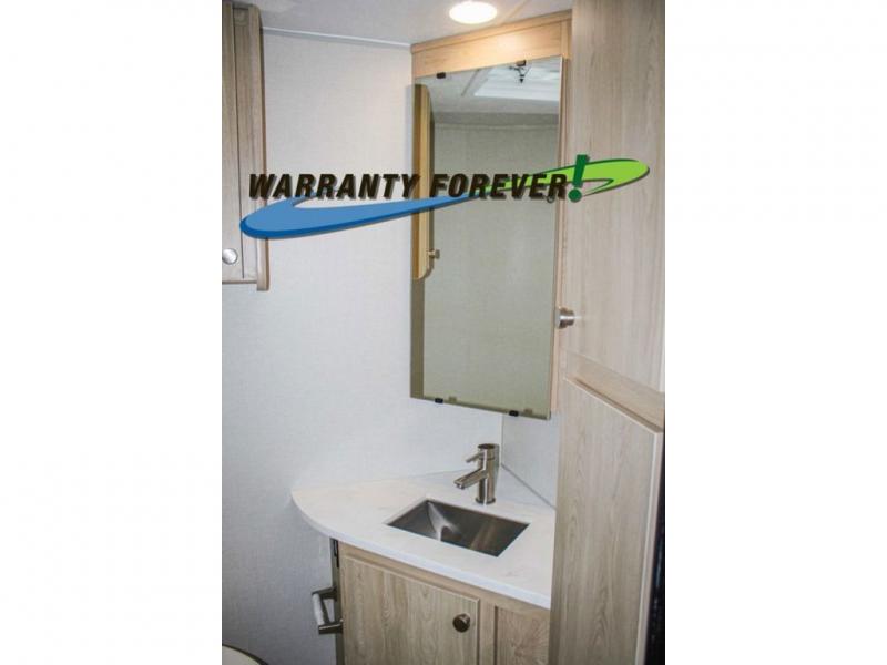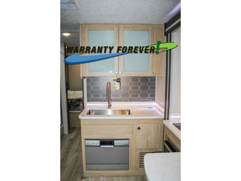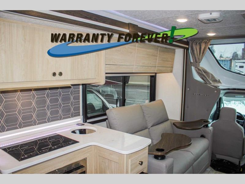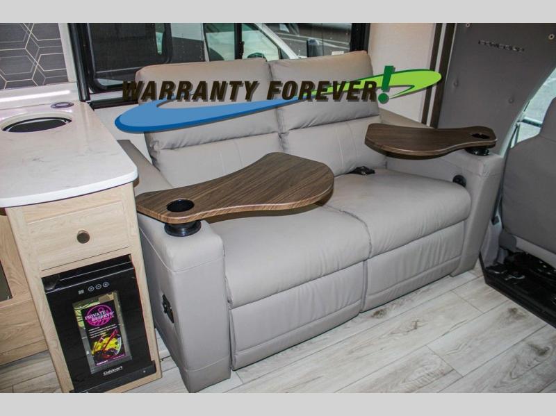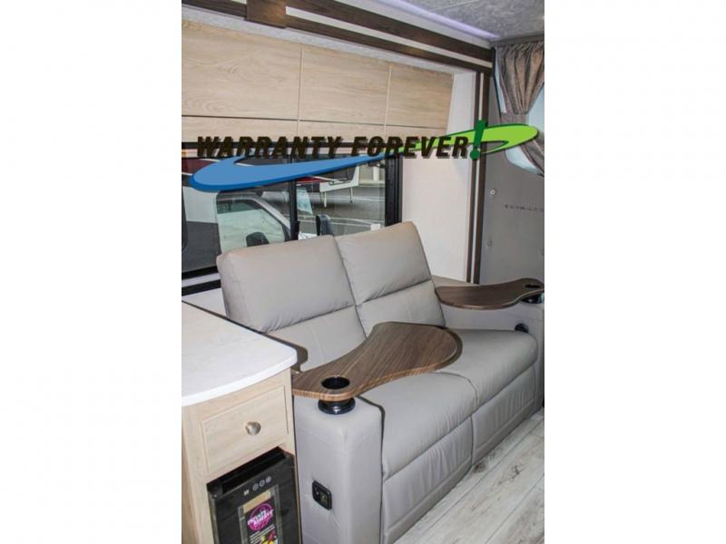 You will travel the highway in true comfort with this motorhome! After a long day of traveling, you can head to the rear private bedroom and lay down on the king bed slide across from a dresser with a 32" Smart TV and even an area prepped to add an optional washer and dryer. The separated bathroom allows one person to clean up in the 24" x 36" shower while another uses the private toilet and sink. The chef can prepare their best meals with the two burner induction cooktop, convection microwave, and 10 cu. ft. 12V double door refrigerator. Enjoy your meals at the free standing dinette with four chairs then let your stomach settle in one of the two recliners while you watch a show on the 39" Smart TV or you could head to the outside entertainment center with a TV/HDMI port/Bluetooth soundbar!