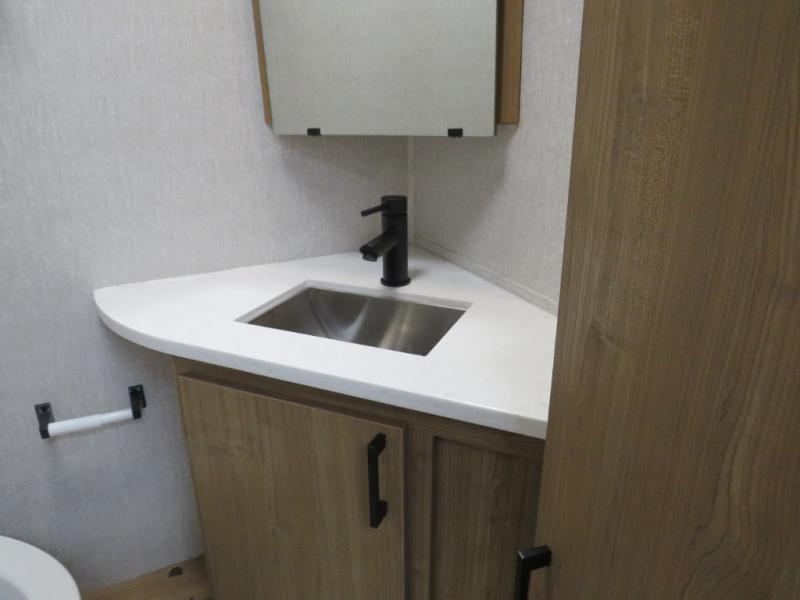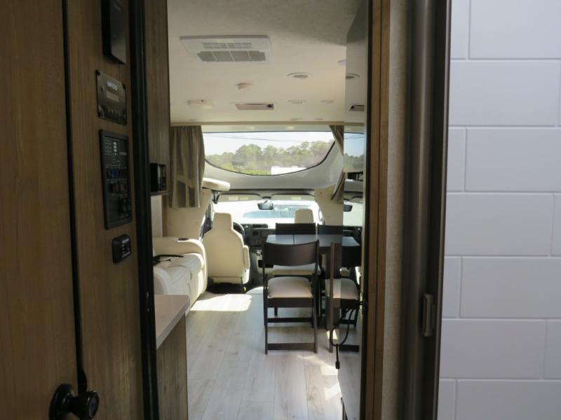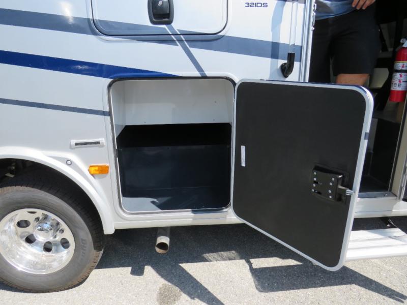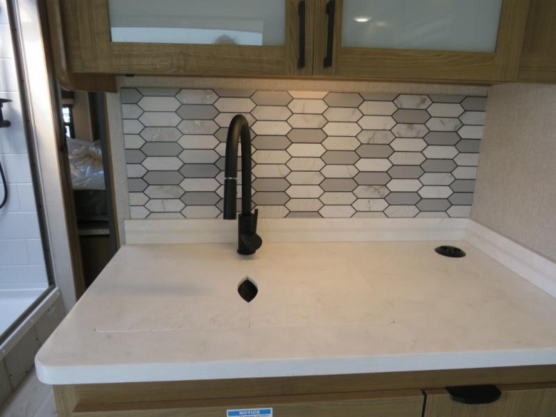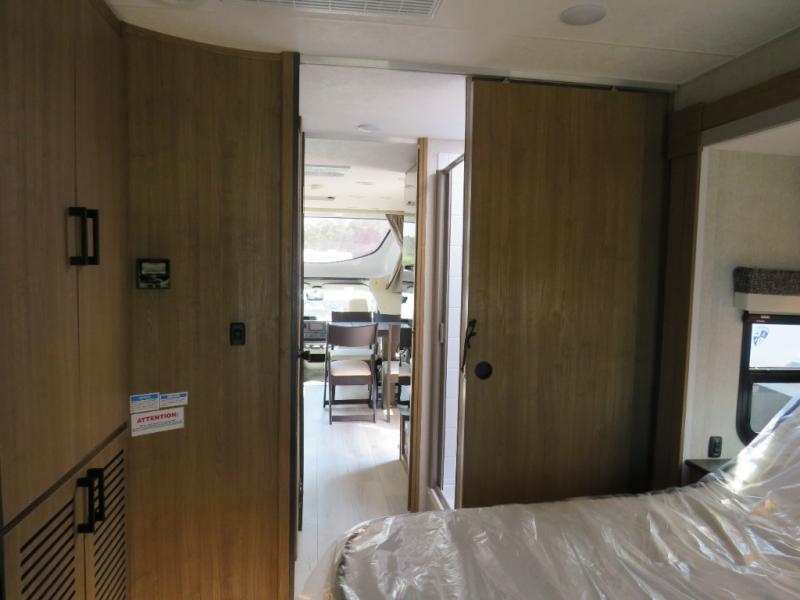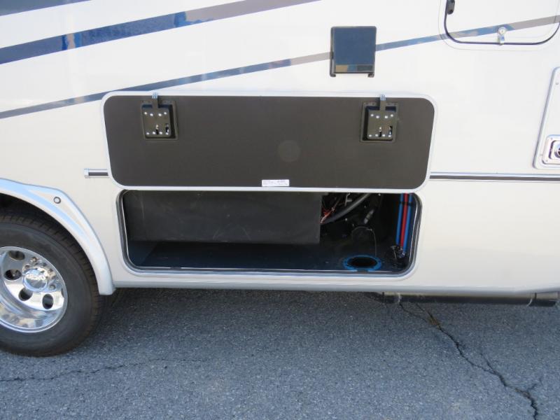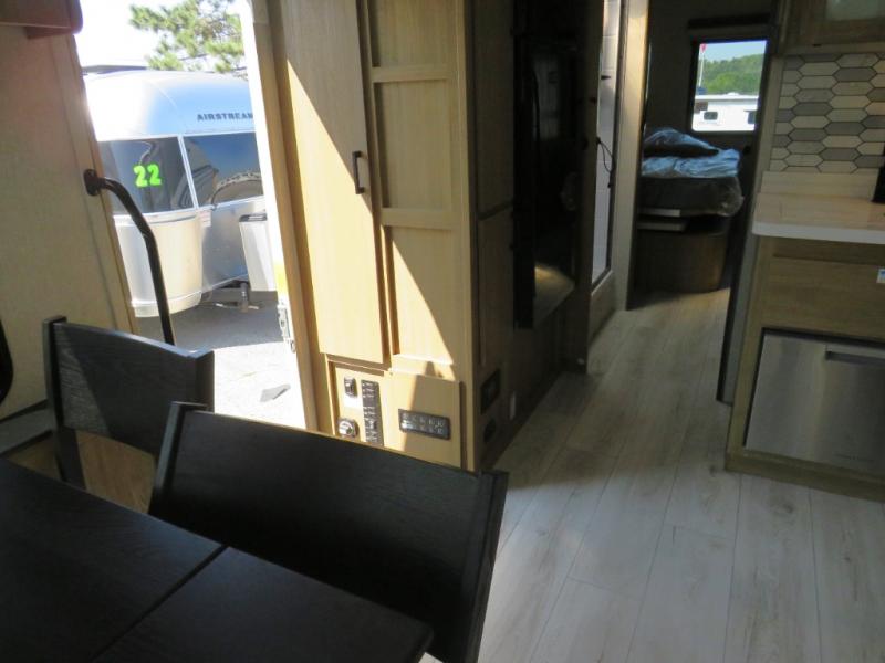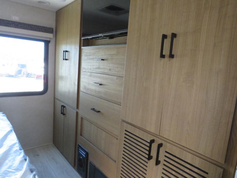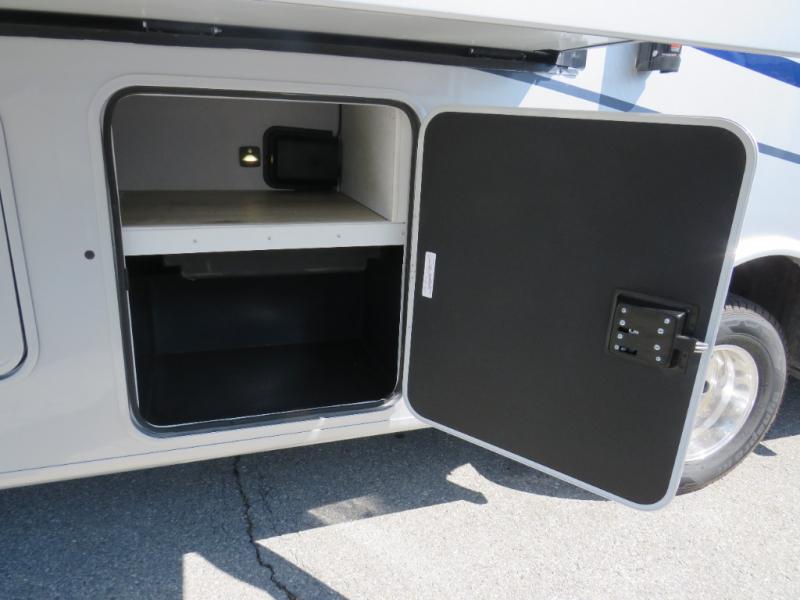 You will travel the highway in true comfort with this motorhome! After a long day of traveling, you can head to the rear private bedroom and lay down on the king bed slide across from a dresser with a 32" Smart TV and even an area prepped to add an optional washer and dryer. The separated bathroom allows one person to clean up in the 24" x 36" shower while another uses the private toilet and sink. The chef can prepare their best meals with the two burner induction cooktop, convection microwave, and 10 cu. ft. 12V double door refrigerator. Enjoy your meals at the free standing dinette with four chairs then let your stomach settle in one of the two recliners while you watch a show on the 39" Smart TV or you could head to the outside entertainment center with a TV/HDMI port/Bluetooth soundbar!