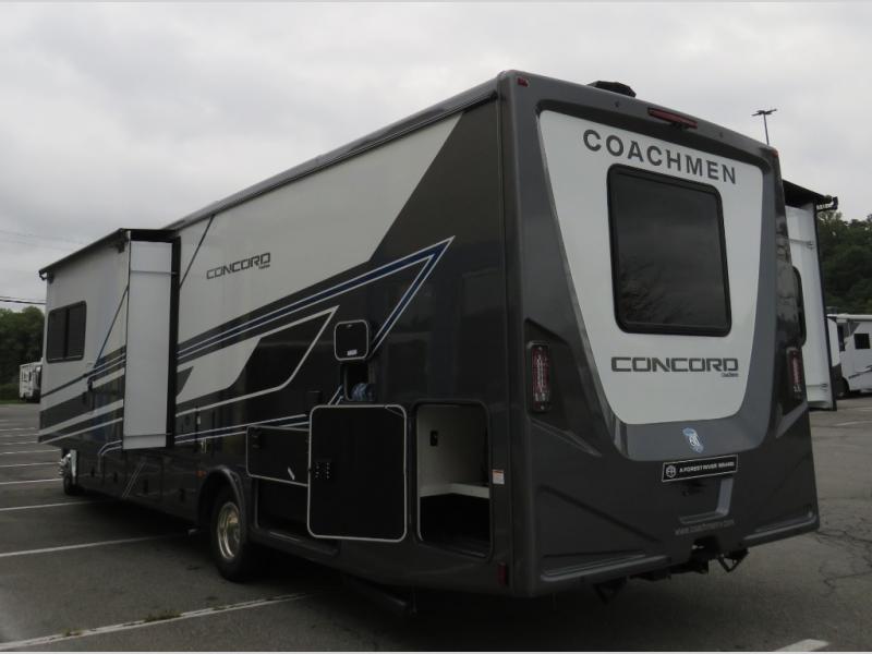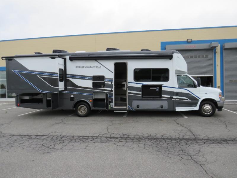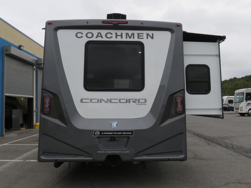 Start traveling in a convenient and comfortable way with one of these Coachmen RV Concord Class C gas motorhomes! They are built on a Ford E-450 chassis with a 7.3L V8 engine to power you to every destination. The molded rear fiberglass cap has backup proximity sensors and the molded front fiberglass cap has an oversized window for you to clearly see your surroundings. An auto flex rear air ride suspension not only provides a smooth ride, but also an increased roll stability and consistent vehicle ride height. You will appreciate the Aqua View Showermiser system and tankless on demand water heater. Stay cool even on the hottest summer day with the dual 15,000 BTU A/C's with heat pumps. Come check out what else they have to offer!