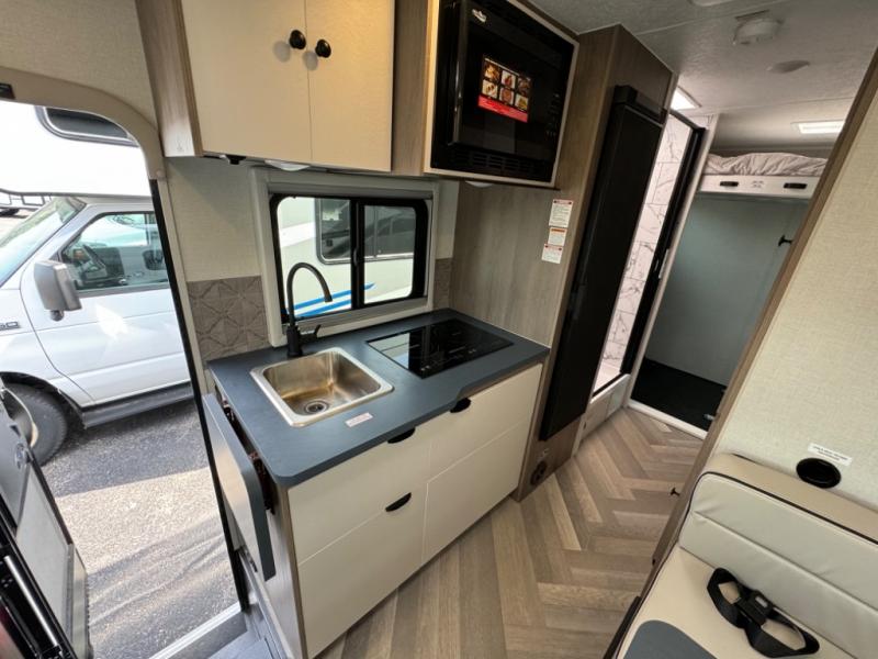 The Cross Trail EV Class C gas motorhomes by Coachmen offer livable and storage friendly coaches with an interior/exterior Smart TV, extra large kitchen counters, and large sliding tinted windows. Also included is the Renogy Empowered state-of-the-art hybrid electrical system designed to operate every coach function from battery power, including the A/C, and is convenient for operating systems while traveling without the use of a generator. Each has a fuel-friendly Ford transit chassis, Azdel composite vacuum bonded sidewalls, and a CrossFlex roof membrane, providing more puncture resistance. And the available all-wheel drive means you can go off the beaten path if you choose that option!