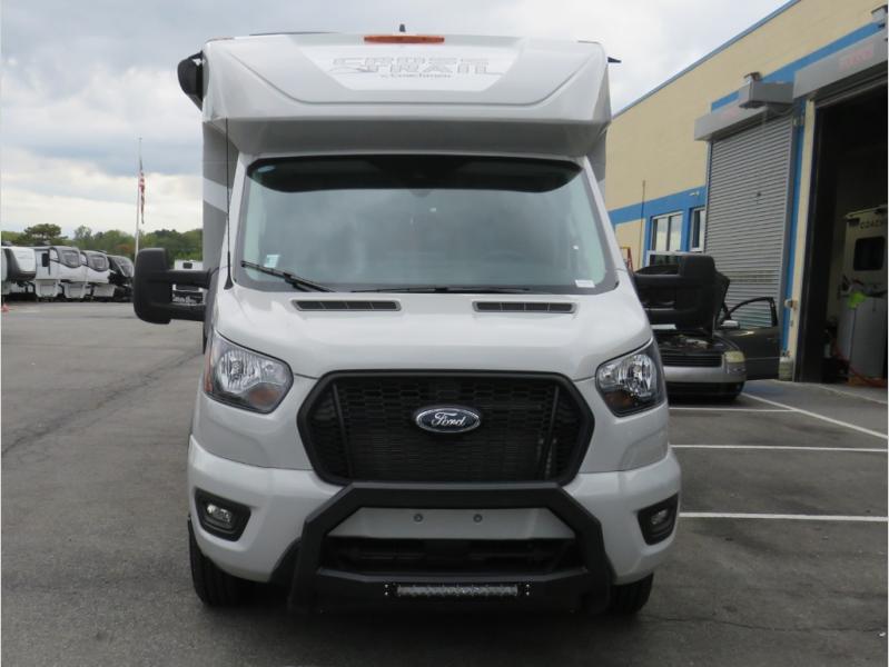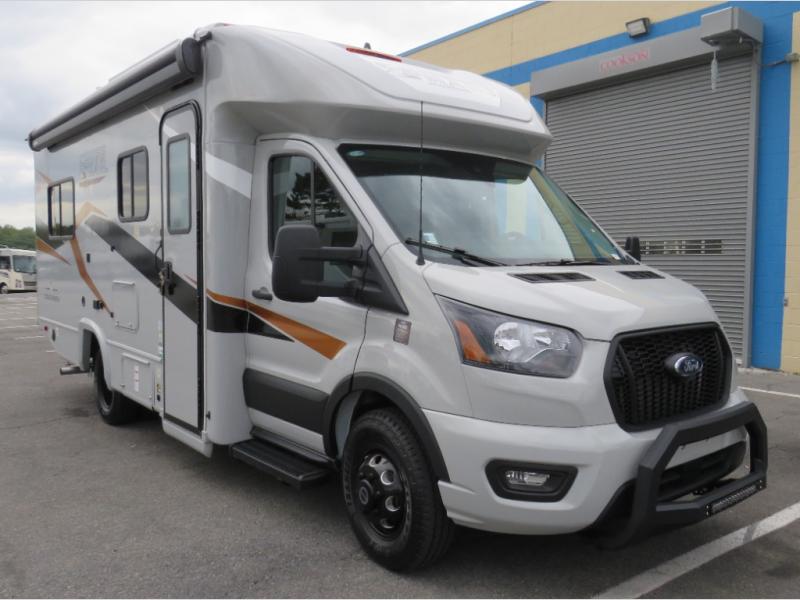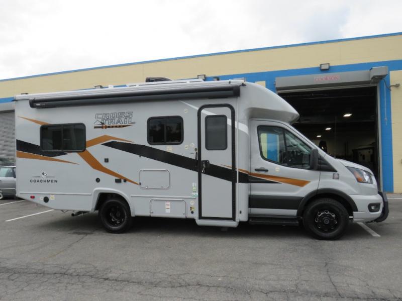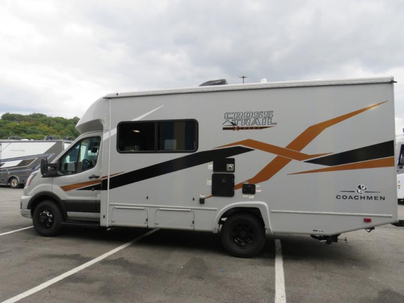 The Cross Trail EV Class C gas motorhomes by Coachmen offer livable and storage friendly coaches with an interior/exterior Smart TV, extra large kitchen counters, and large sliding tinted windows. Also included is the Renogy Empowered state-of-the-art hybrid electrical system designed to operate every coach function from battery power, including the A/C, and is convenient for operating systems while traveling without the use of a generator. Each has a fuel-friendly Ford transit chassis, Azdel composite vacuum bonded sidewalls, and a CrossFlex roof membrane, providing more puncture resistance. And the available all-wheel drive means you can go off the beaten path if you choose that option!