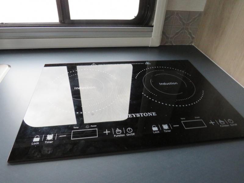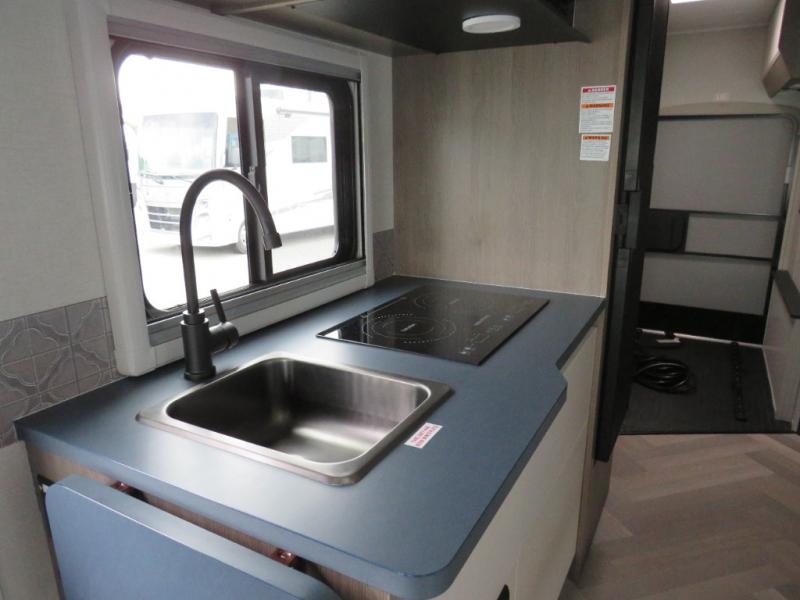 When you enjoy relaxing indoors this coach offers two areas; the rear corner with a double-size Murphy bed, and a J-lounge behind the driver's seat that includes an 18" extension. In the morning, you can prepare eggs and bacon on the two burner induction cooktop, or make instant oatmeal in the microwave oven. The 14' power awning will provide much wanted shade during the day when relaxing outdoors, and the rear corner full bath will allow you to clean up just like you would at home.