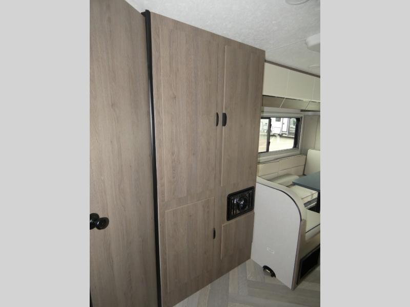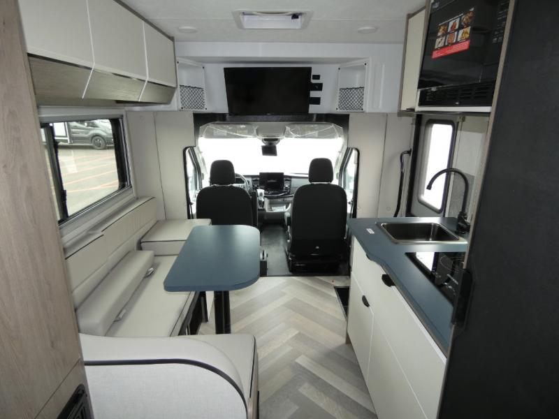 The Cross Trail EV Class C gas motorhomes by Coachmen offer livable and storage friendly coaches with an interior/exterior Smart TV, extra large kitchen counters, and large sliding tinted windows. Also included is the Renogy Empowered state-of-the-art hybrid electrical system designed to operate every coach function from battery power, including the A/C, and is convenient for operating systems while traveling without the use of a generator. Each has a fuel-friendly Ford transit chassis, Azdel composite vacuum bonded sidewalls, and a CrossFlex roof membrane, providing more puncture resistance.