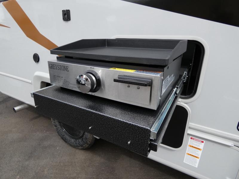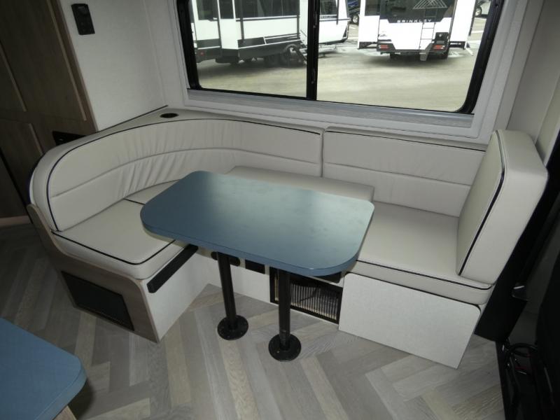 When you enjoy relaxing indoors this coach offers two areas; the rear corner with a double-size Murphy bed, and a J-lounge behind the driver's seat that includes an 18" extension. In the morning, you can prepare eggs and bacon on the two burner induction cooktop, or make instant oatmeal in the microwave oven. The 14' power awning will provide much wanted shade during the day when relaxing outdoors, and the rear corner full bath will allow you to clean up just like you would at home.